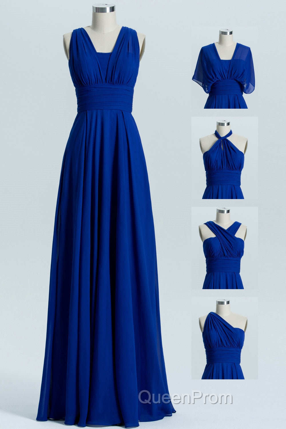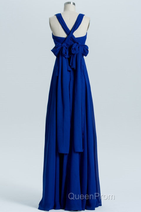 Royal Blue A-line Chiffon Long Convertible Bridesmaid Dresses