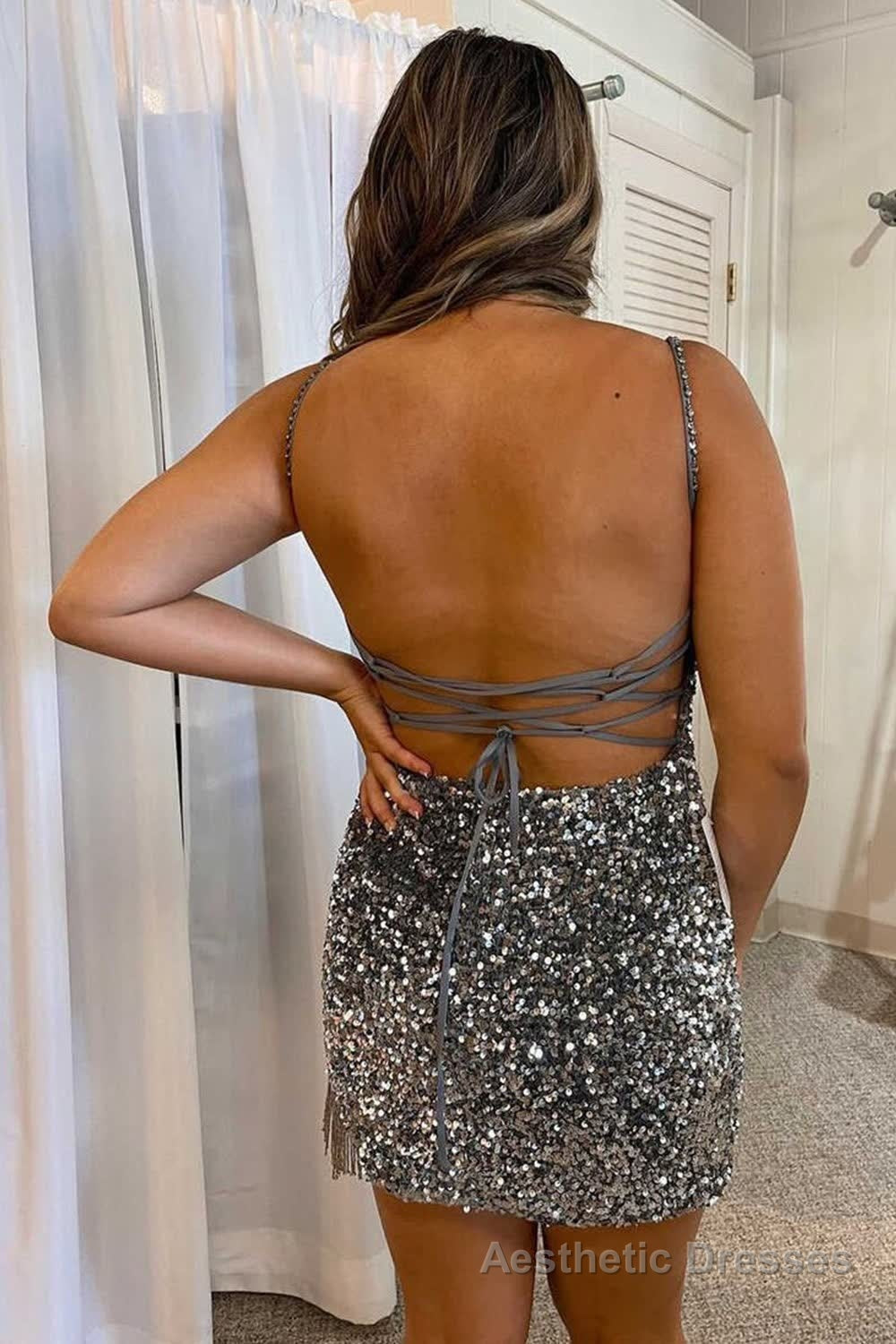 Royal Blue Sequined Tight Homecoming Dress with Fringes