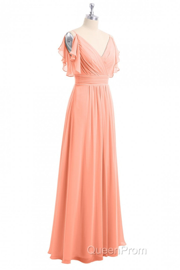 Rust Orange Cold-Shoulder A-Line Long Bridesmaid Dresses