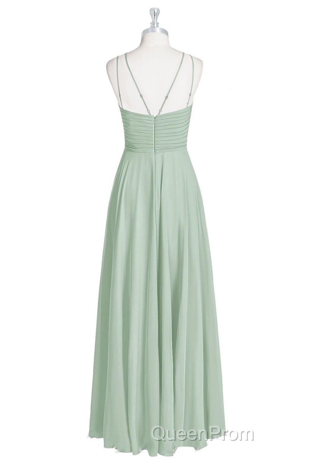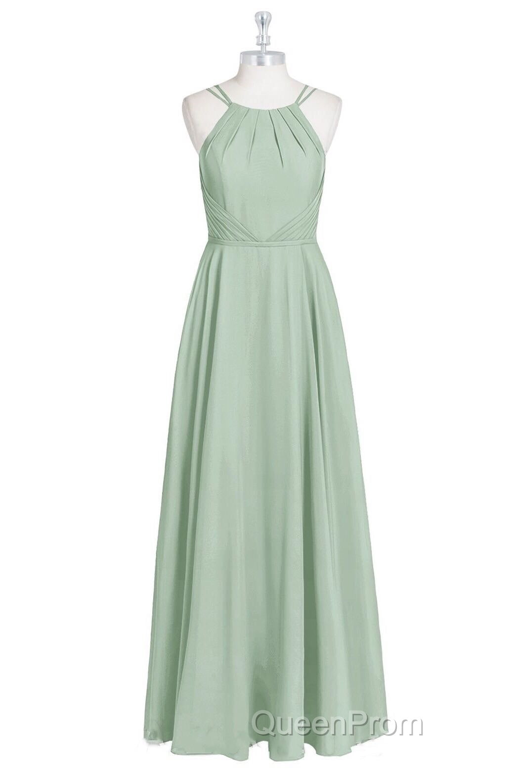 Sage Green Chiffon Halter A-Line Long Bridesmaid Dresses