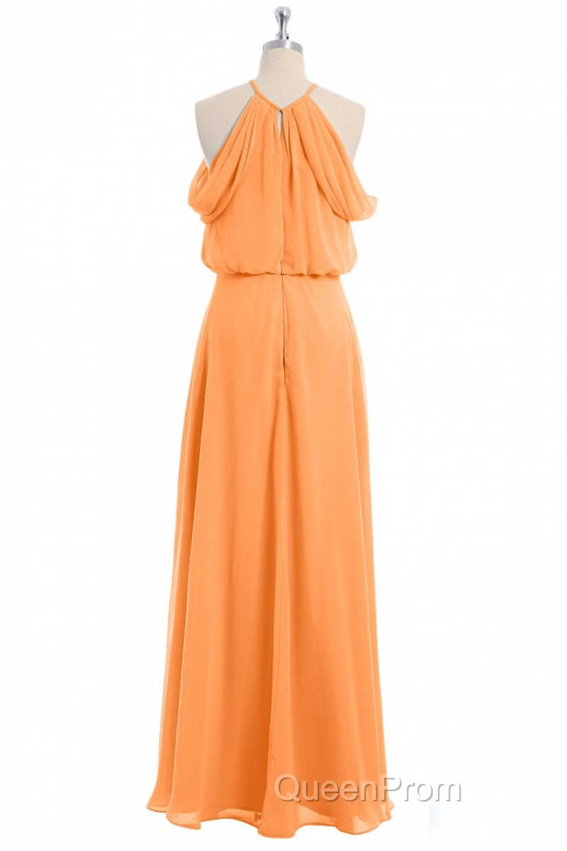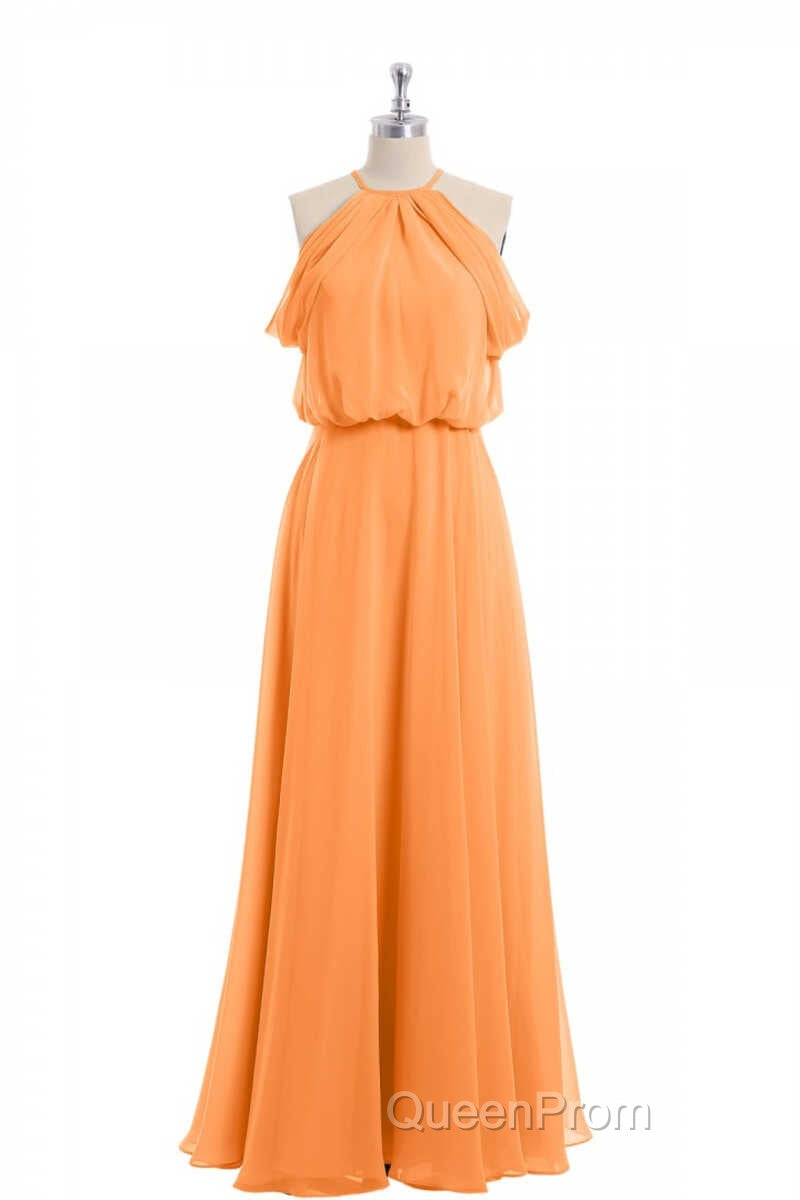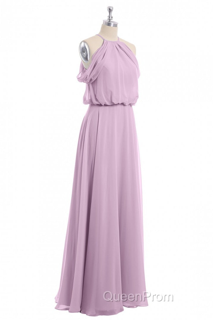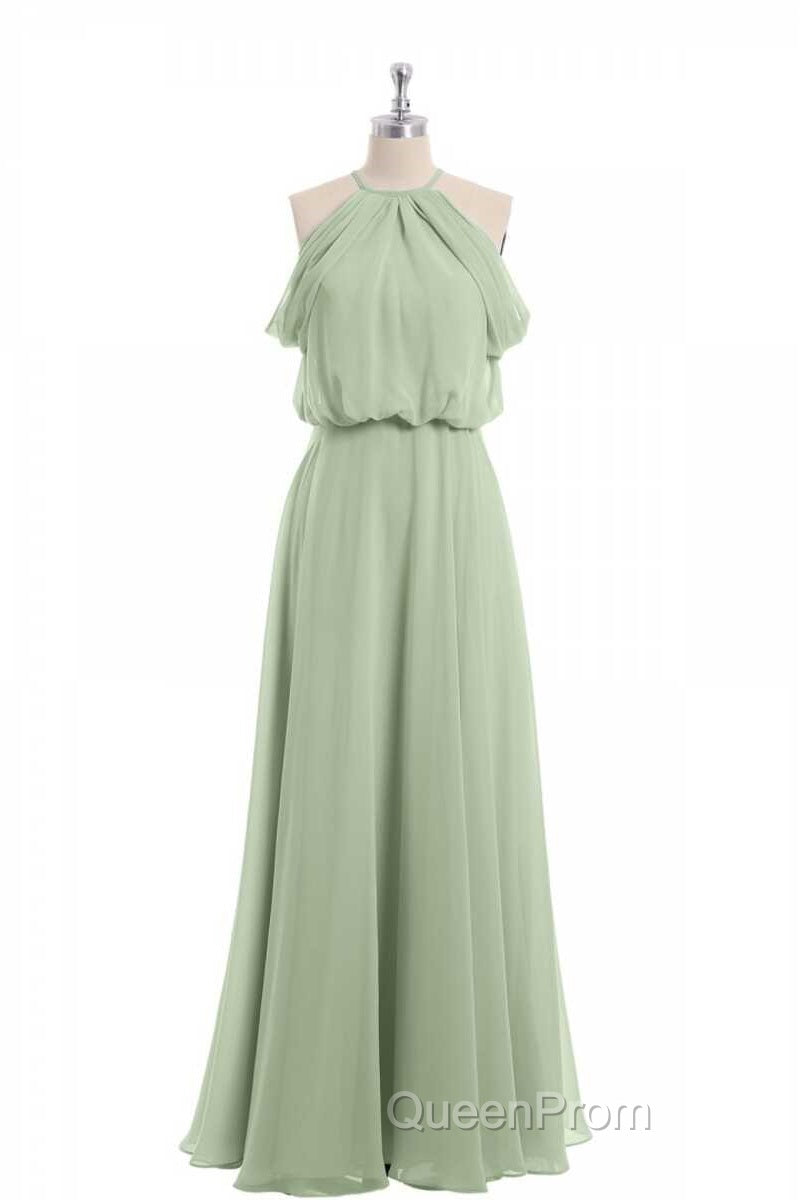 Sage Green Chiffon Halter Blouson-Style Long Bridesmaid Dresses