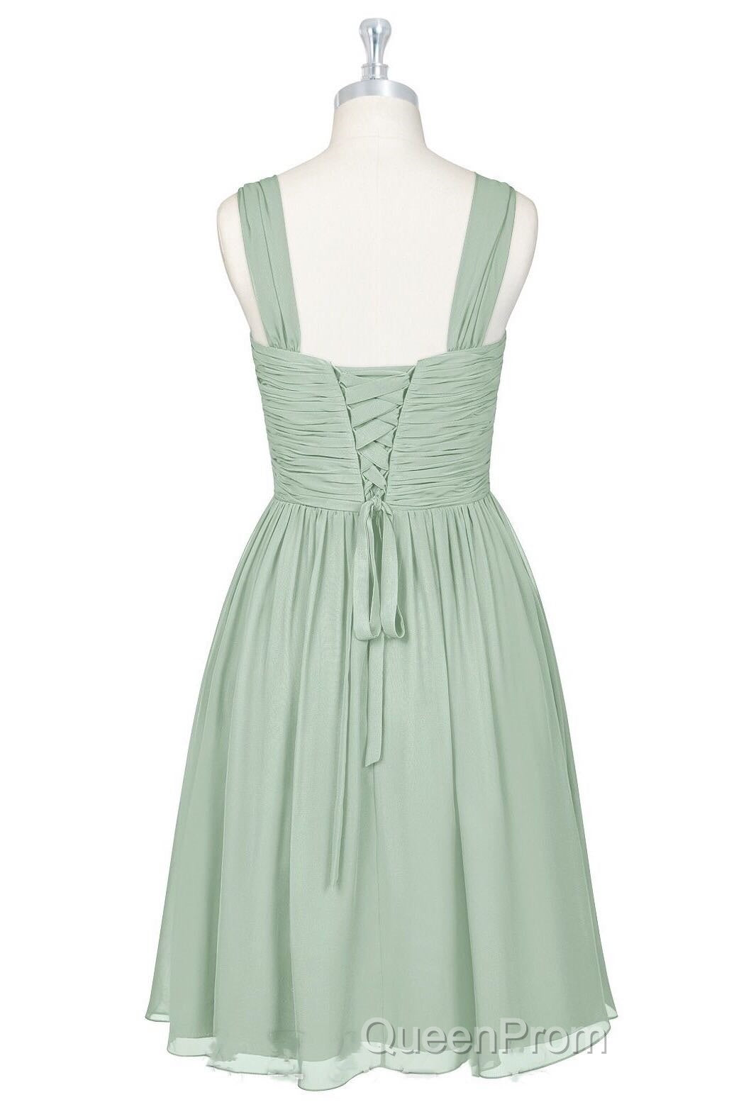 Sage Green Chiffon Lace-Up Short Bridesmaid Dresses