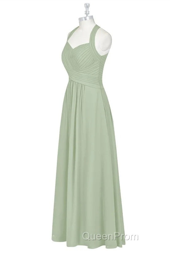 Sage Green Halter Backless A-Line Bridesmaid Dresses