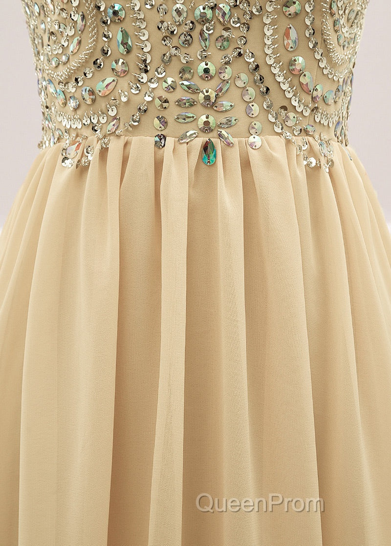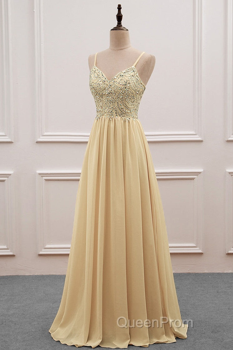 Sequined Spaghetti Straps Chiffon Long Evening Prom Dresses