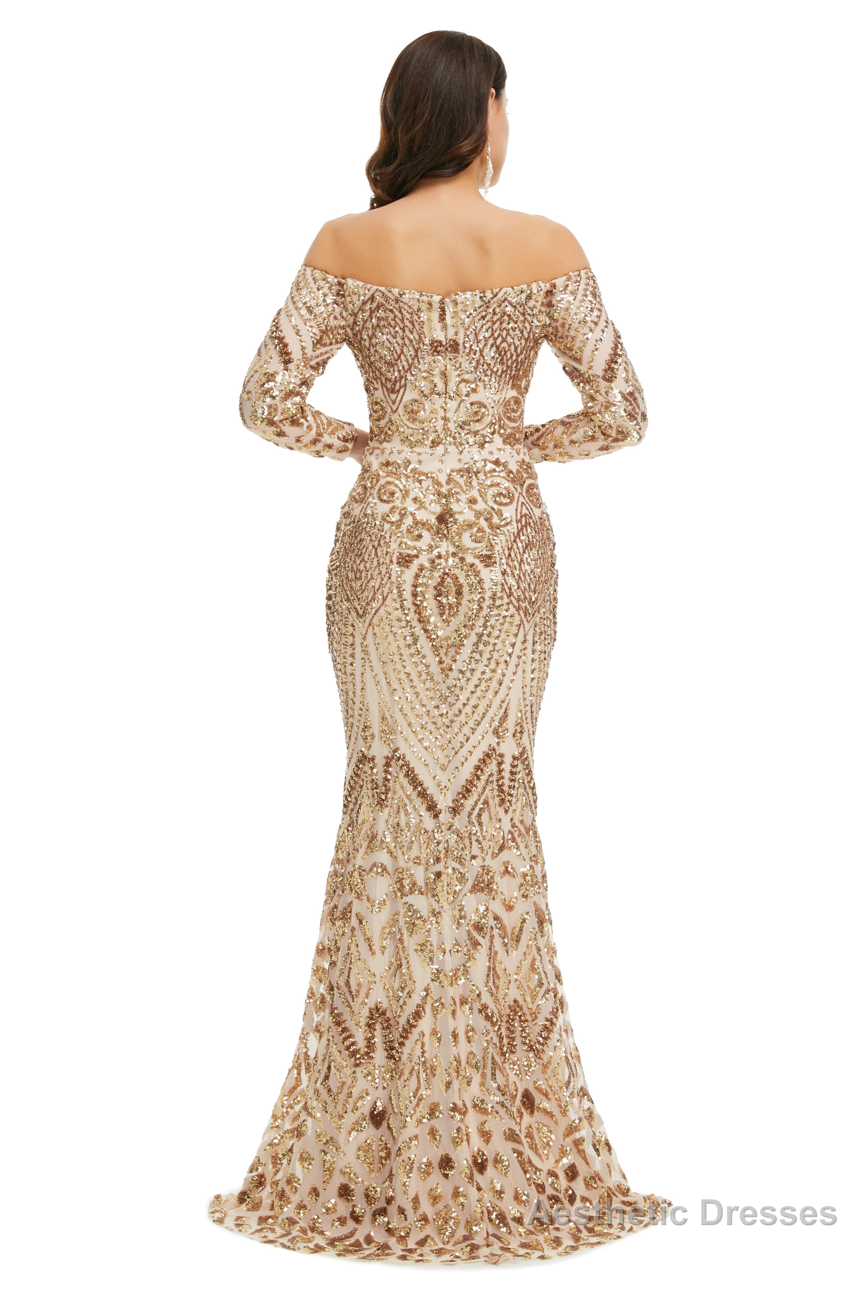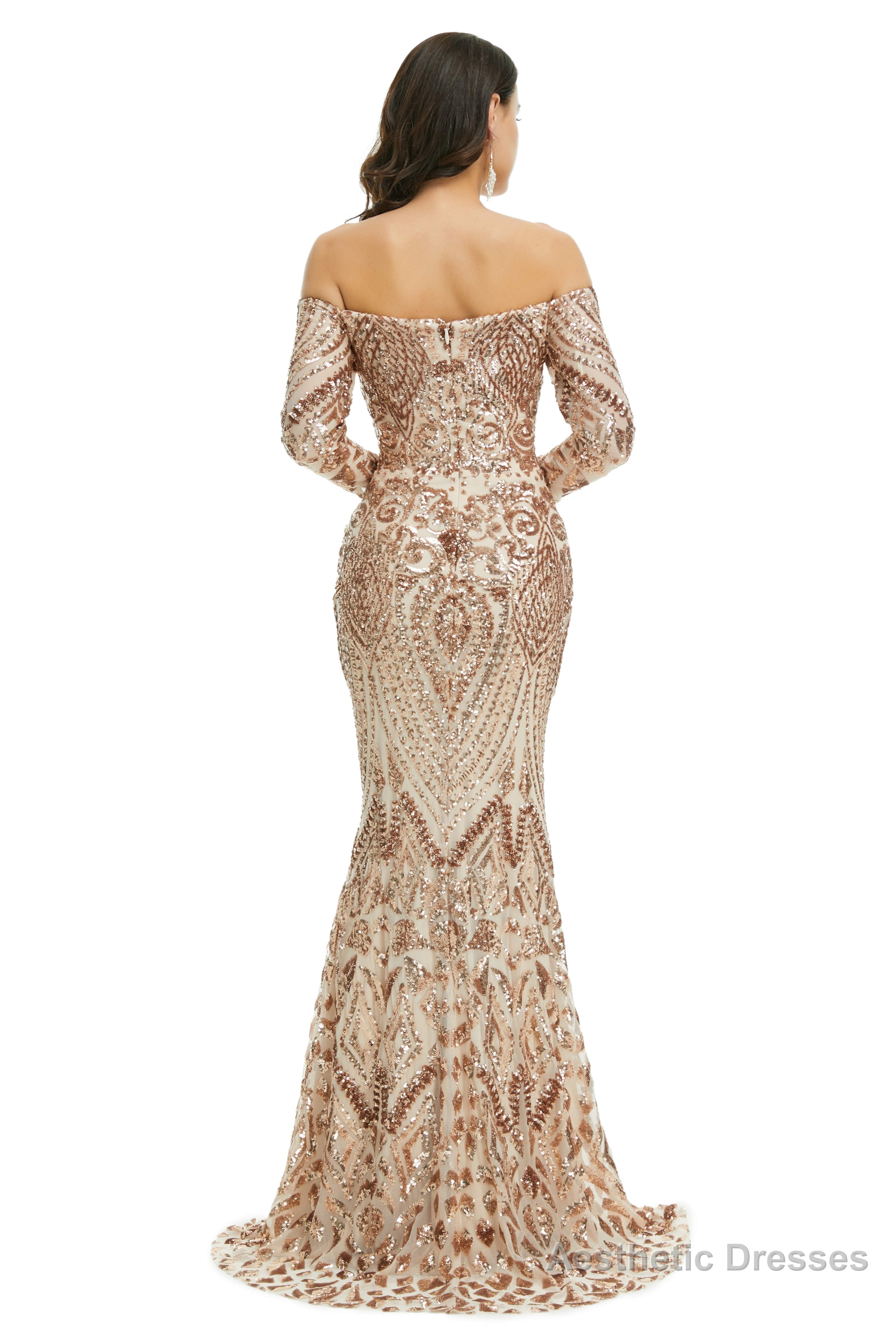 Sequins Mermaid Long Sleeves Off the Shoulder Evening Dresses