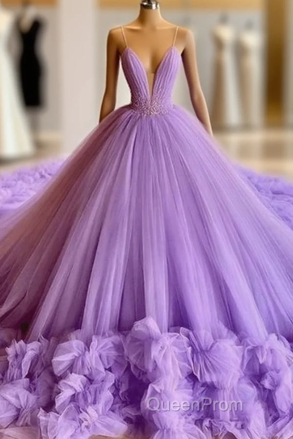 Sexy Spaghetti Straps Lavender Tulle Wedding Dresses Beading Bodice