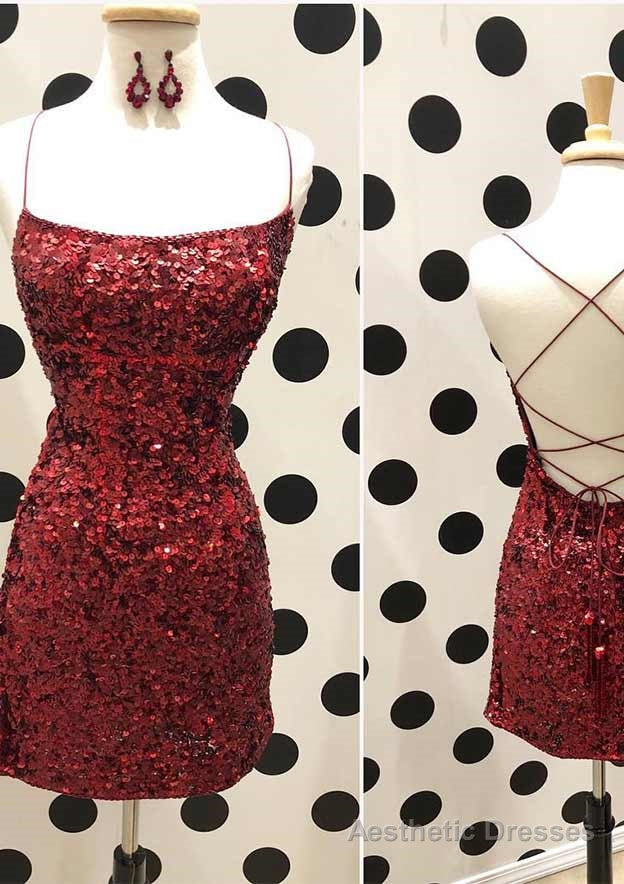 Sheath/Column Square Neckline Sleeveless Short/Mini Velvet Sequins Homecoming Dress