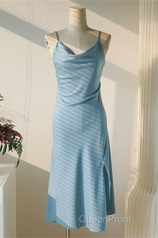 Sheath Light Sky Blue Cowl Neck Mini Bridesmaid Dresses
