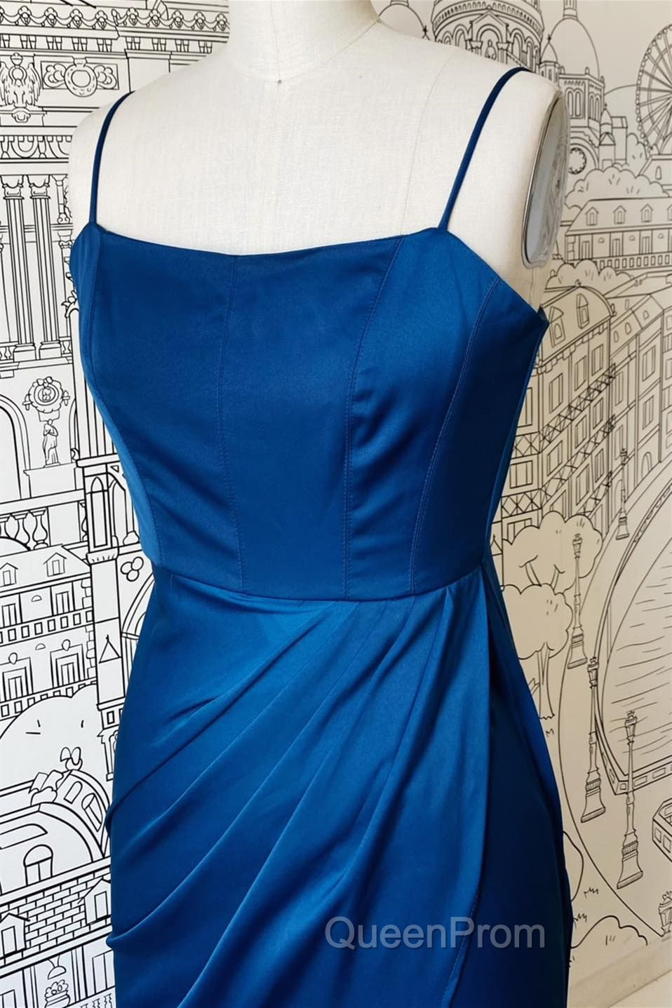 Sheath Spaghetti Straps Satin Long Bridesmaid Dresses with Slit
