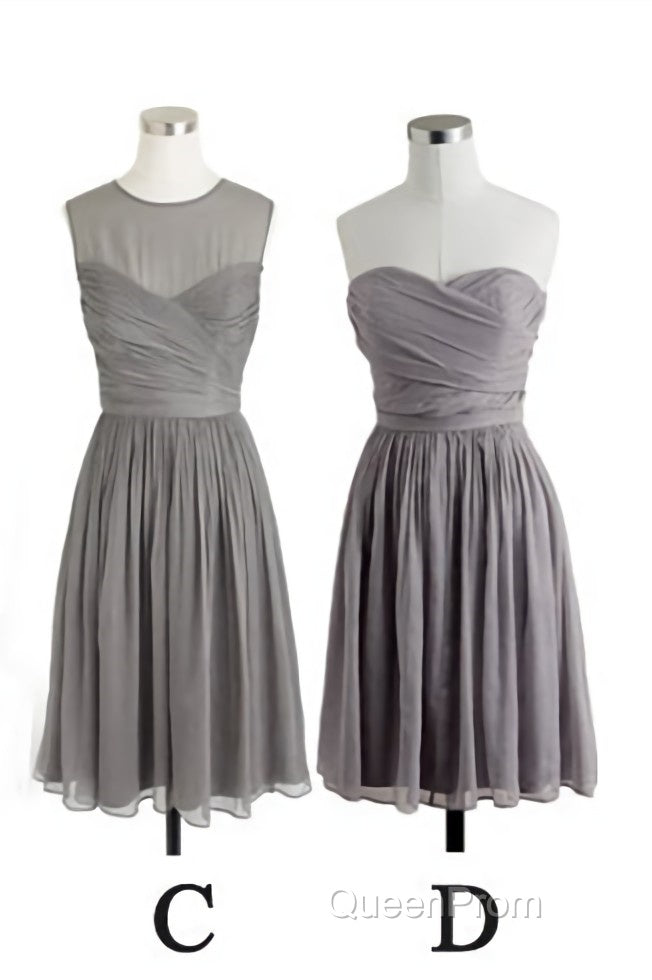 Simple A Line Grey Short Chiffon Bridesmaid Dresses