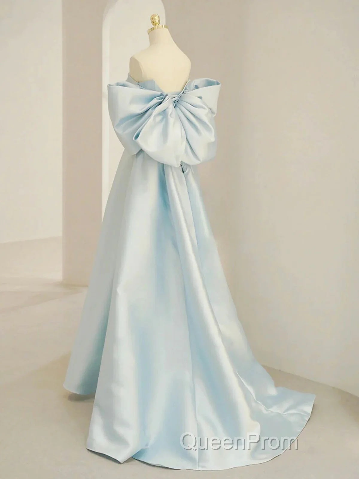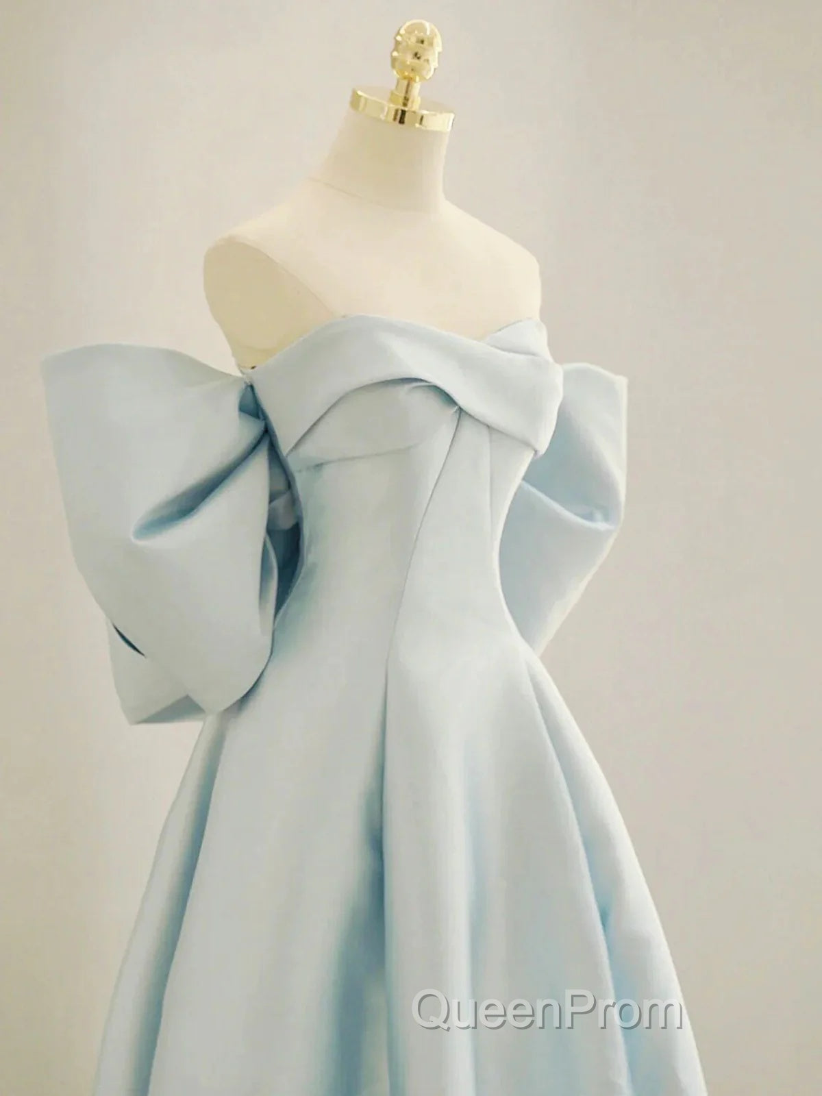 Simple A Line Off The Shoulder Blue Satin Long Evening Prom Dresses