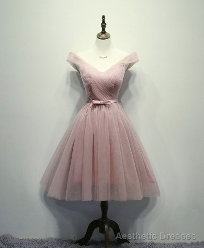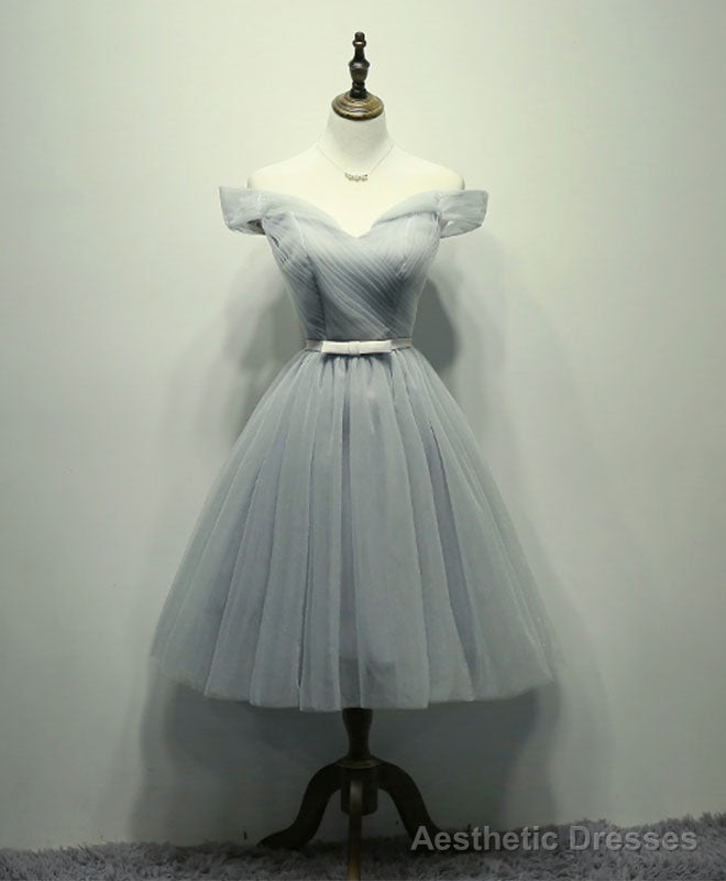 Simple Gray Tulle Short Prom Dress, Gray Tulle Bridesmaid Dress