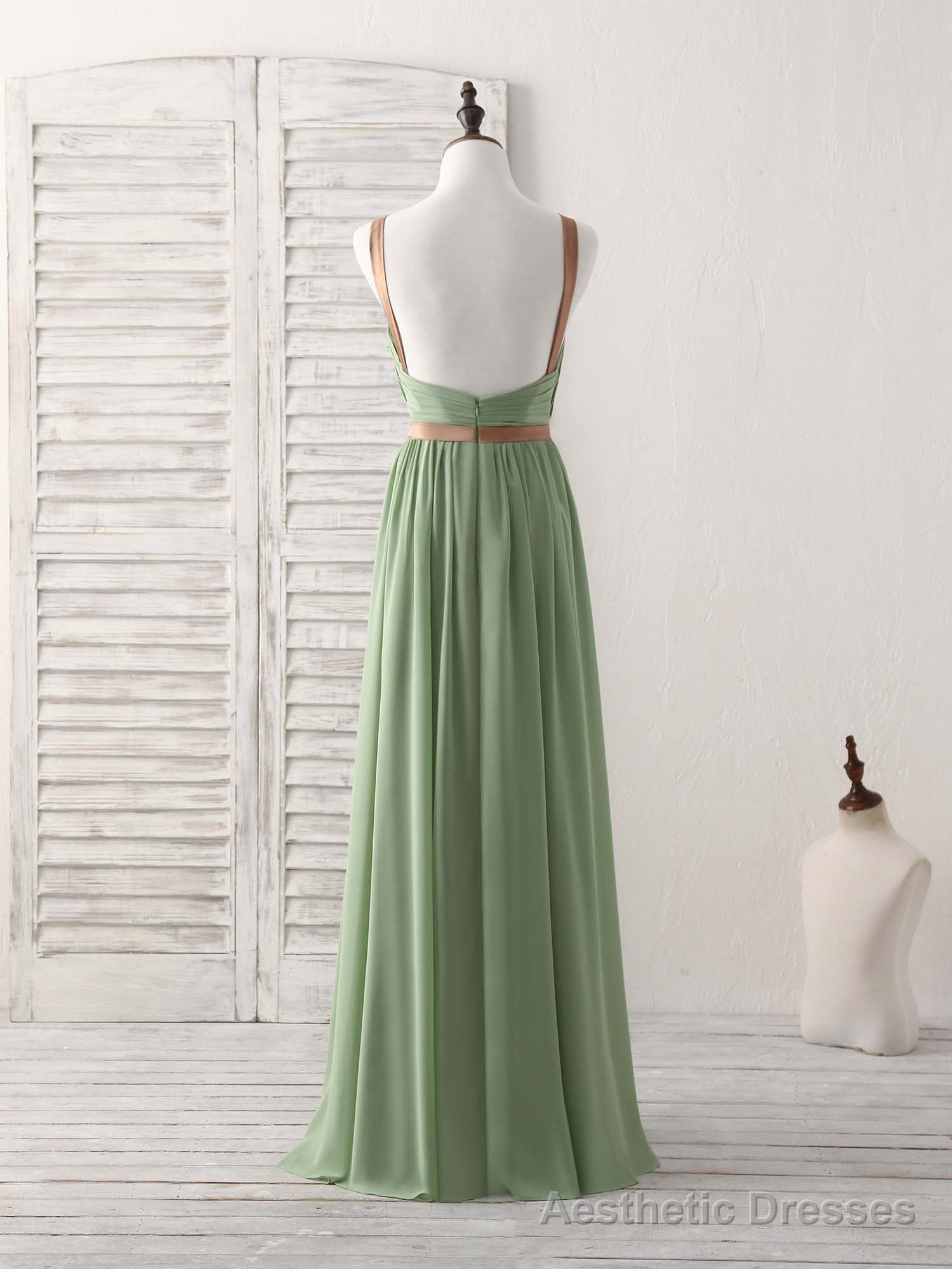 Simple Green Chiffon Long Prom Dress, Green Bridesmaid Dress