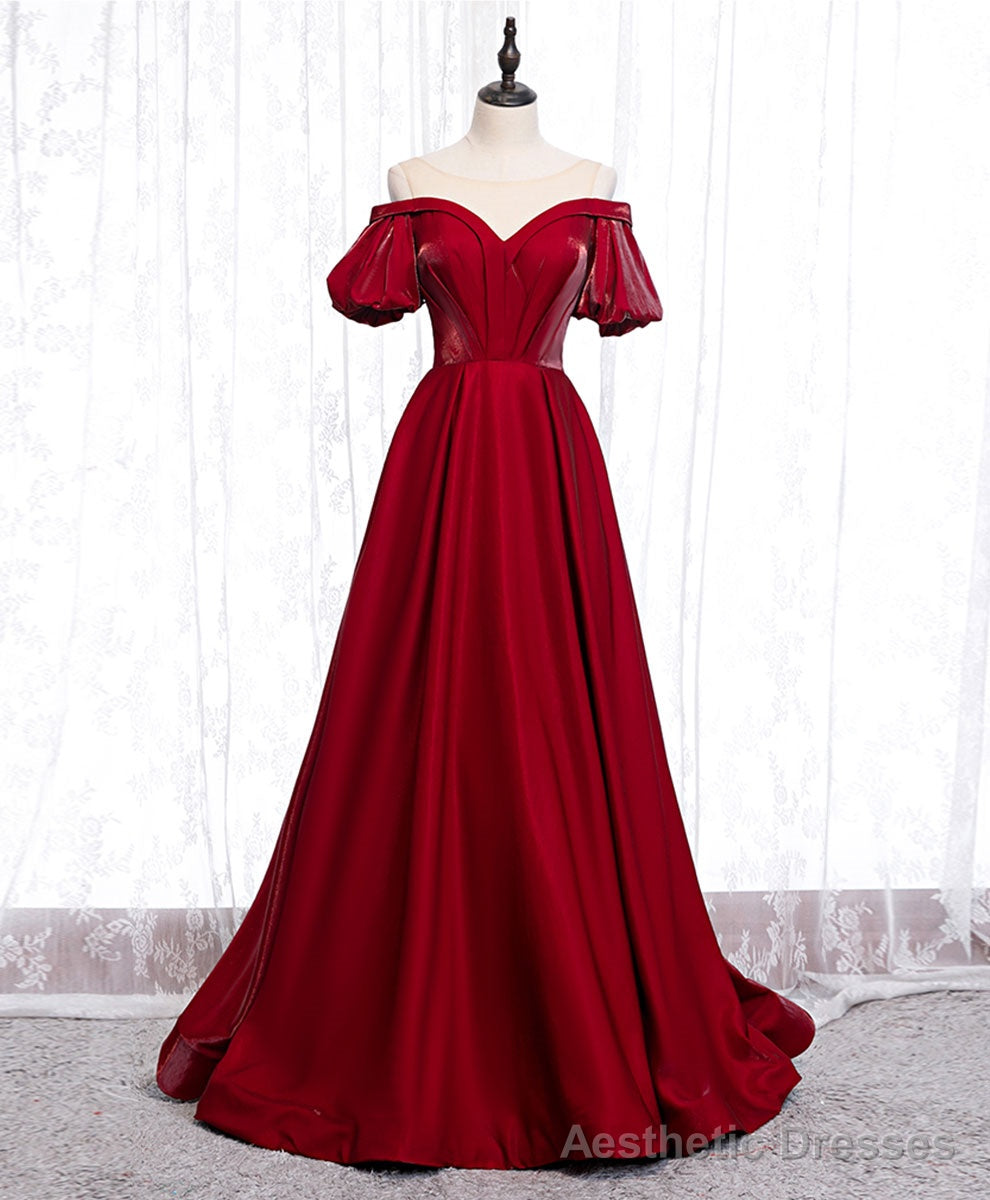 Simple Sweetheart Burgundy Satin Long Prom Dress, Burgundy Formal Graduation Dress