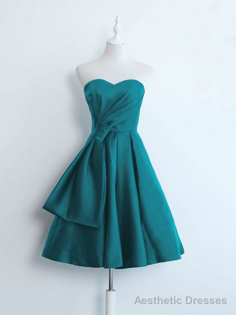 Simple Sweetheart Satin Short Black Prom Dress, Black Homecoming Dresses