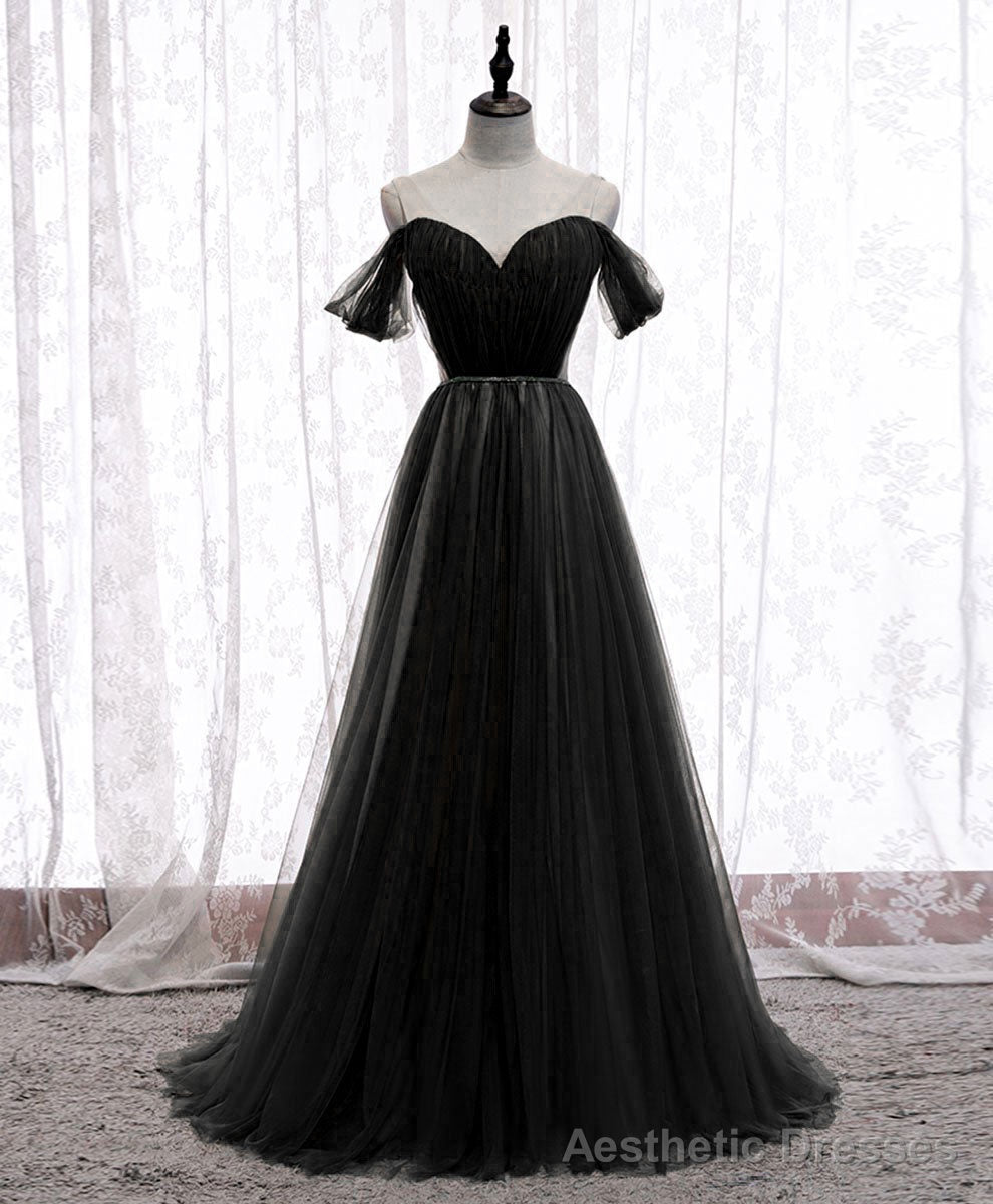 Simple Sweetheart Tulle Off Shoulder Long Prom Dress, Aline Tulle Formal Dress
