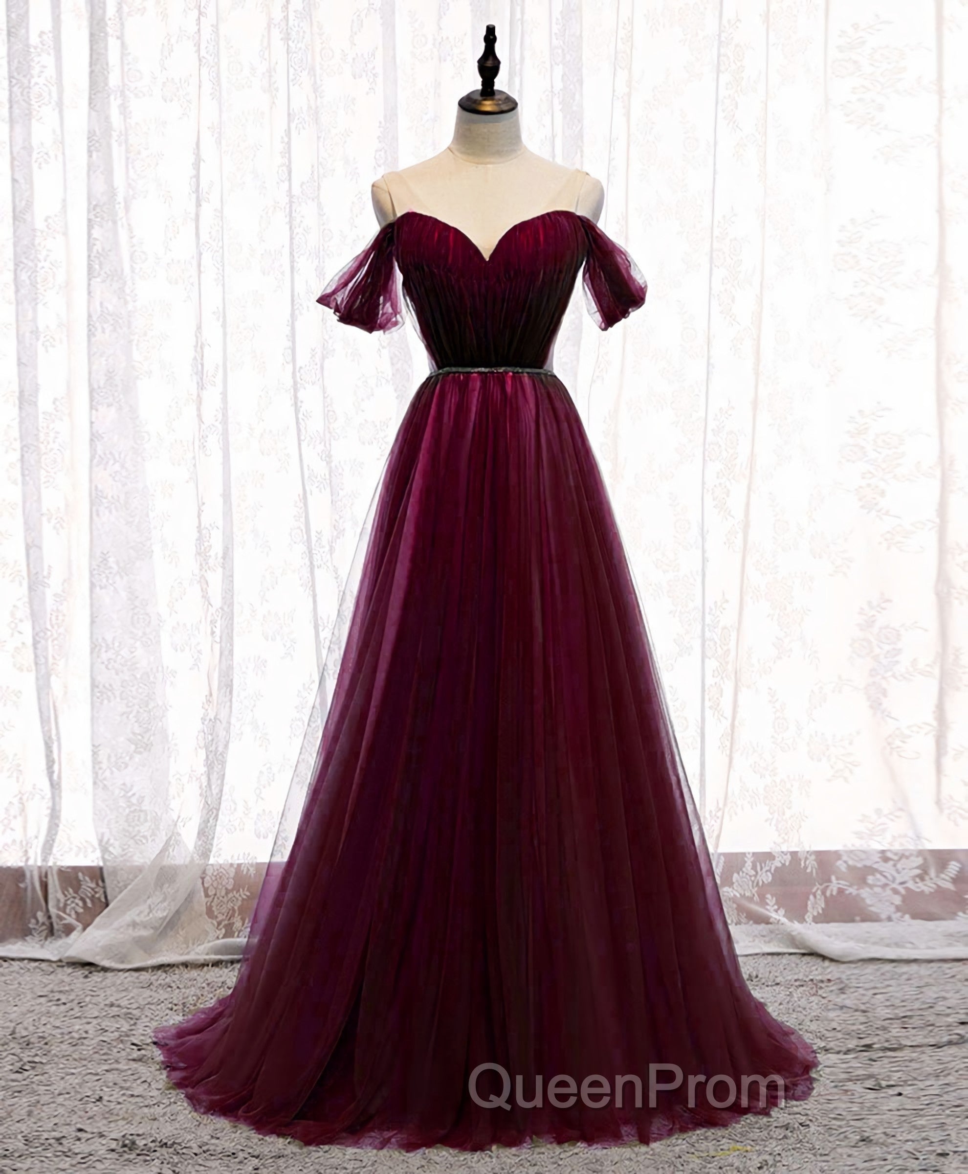 Simple Sweetheart Tulle Off Shoulder Long Evening Prom Dresses, Tulle Formal Dresses