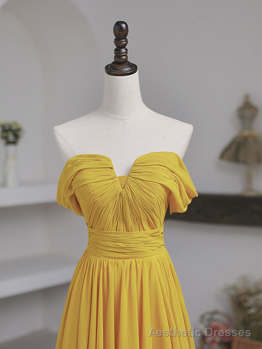 Simple Yellow Off Shoulder Long Prom Dress, Yellow Chiffon Graduation Dresses