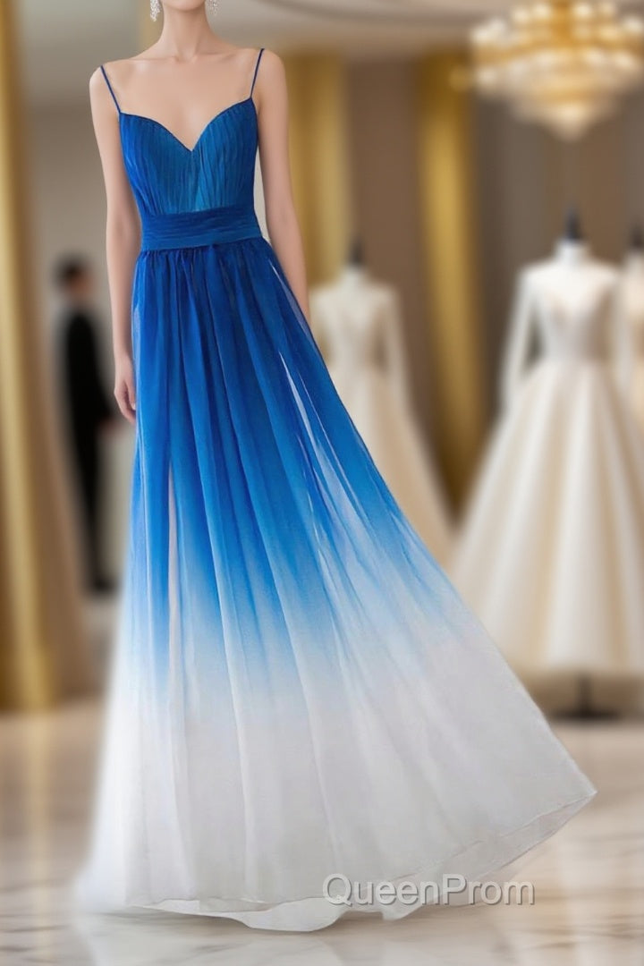 Spaghetti Strap Royal Blue Ombre Long Chiffon Royal Blue Ombre A Line Sweetheart Evening Prom Dresses