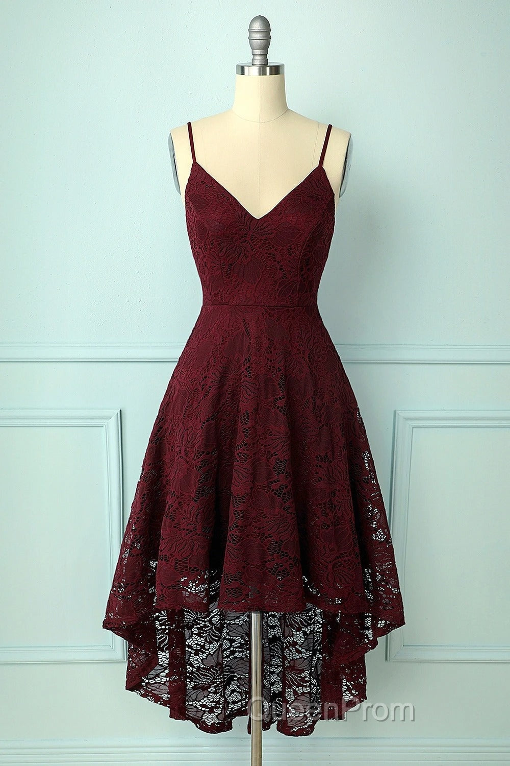Spaghetti Strap High-Low Burgundy Lace Bridesmaid Dresses
