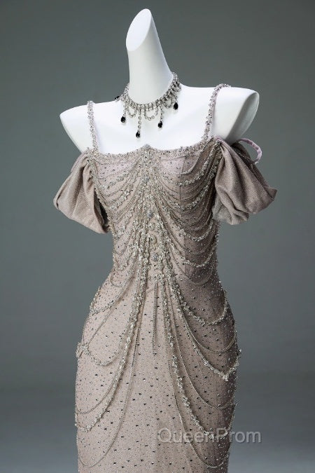 Spaghetti Straps Mermaid Beading Satin Long Evening Prom Dresses Rhinestone Formal Evening Dresses