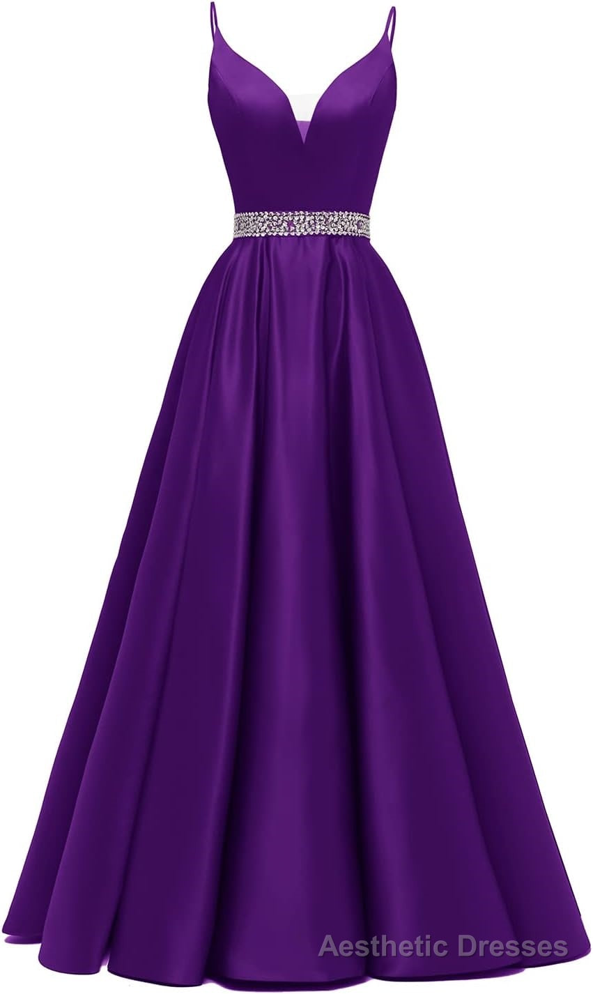 Indulge in elegance with our Spaghetti Straps Prom Dresses. This long satin gown features intricate beading and a flattering V-neckline. With convenient pockets, it's perfect for any formal evening party. Feel confident and stylish in this must-have dress.