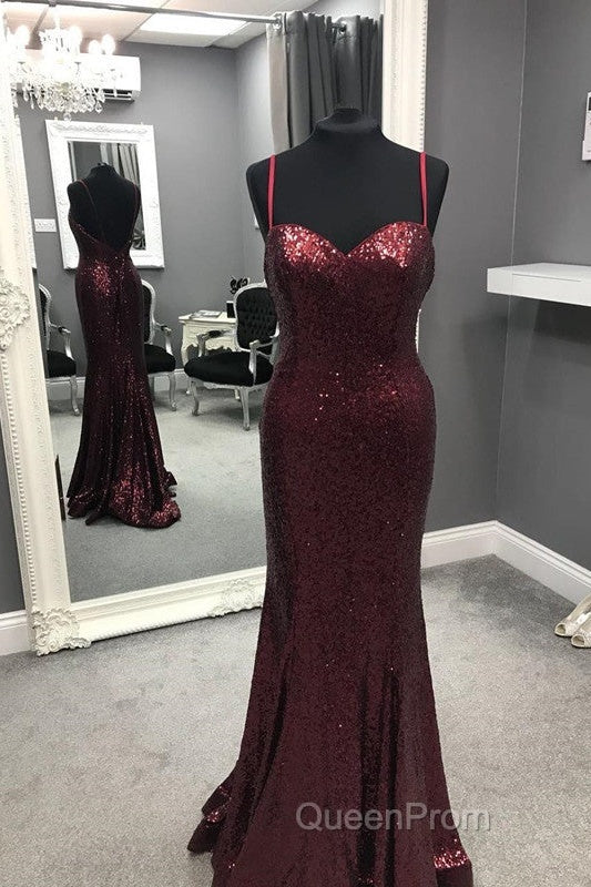 Spaghetti Straps Sweetheart Mermaid Sequins Evening Prom Dresses