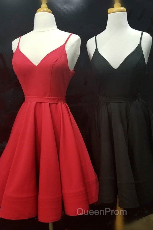 Spaghetti Straps V-Neck Satin Homecoming Dresses Ball Gown Party Dresses