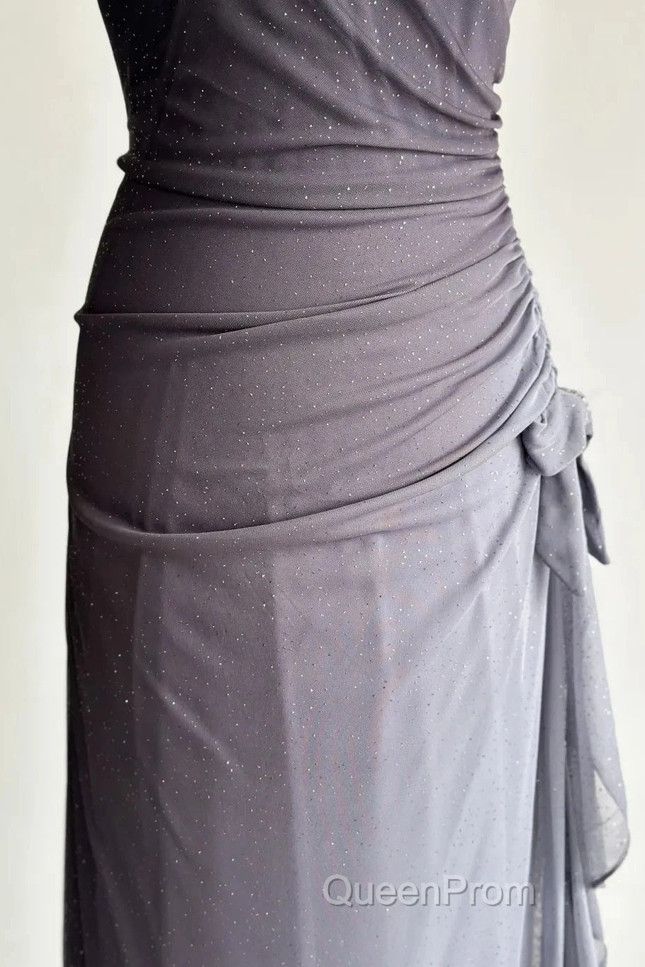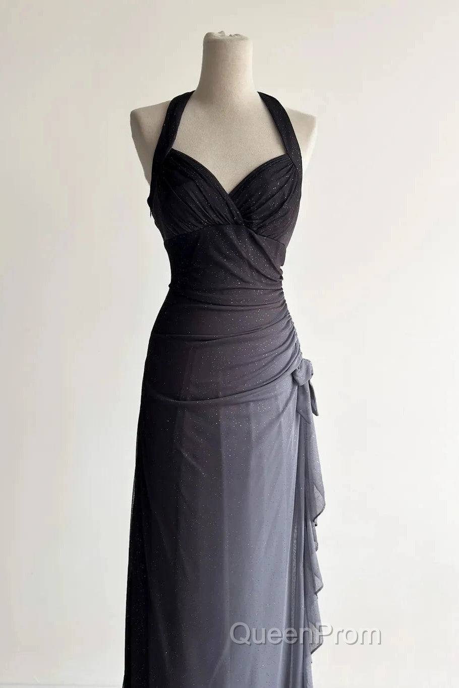 Sparkling Gradient Dark Gray Halter Neck Ruffle Sheath Evening Prom Dresses Birthday Dresses