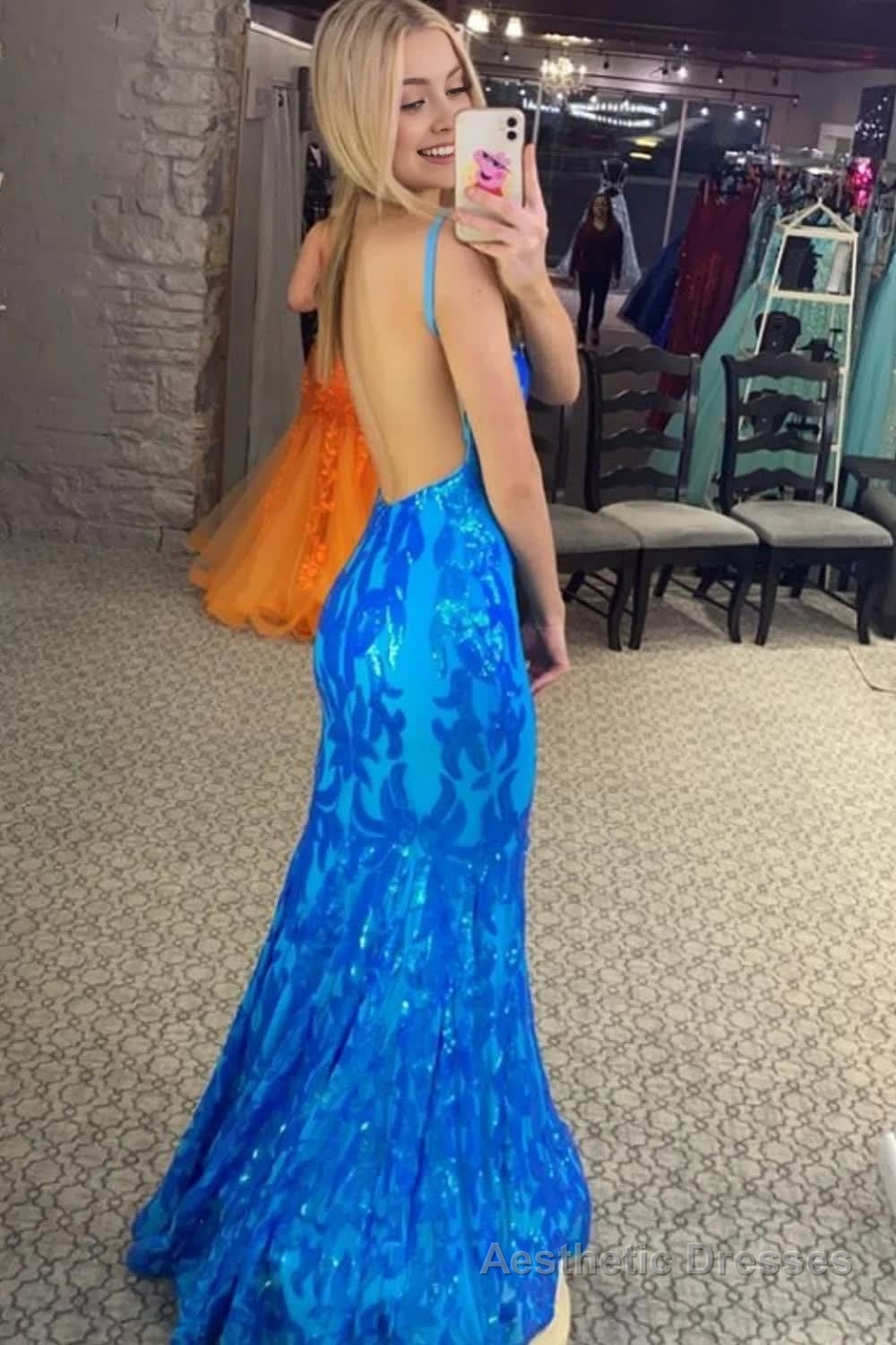 Sparkly Mermaid Orange Sequins Long Prom Dress