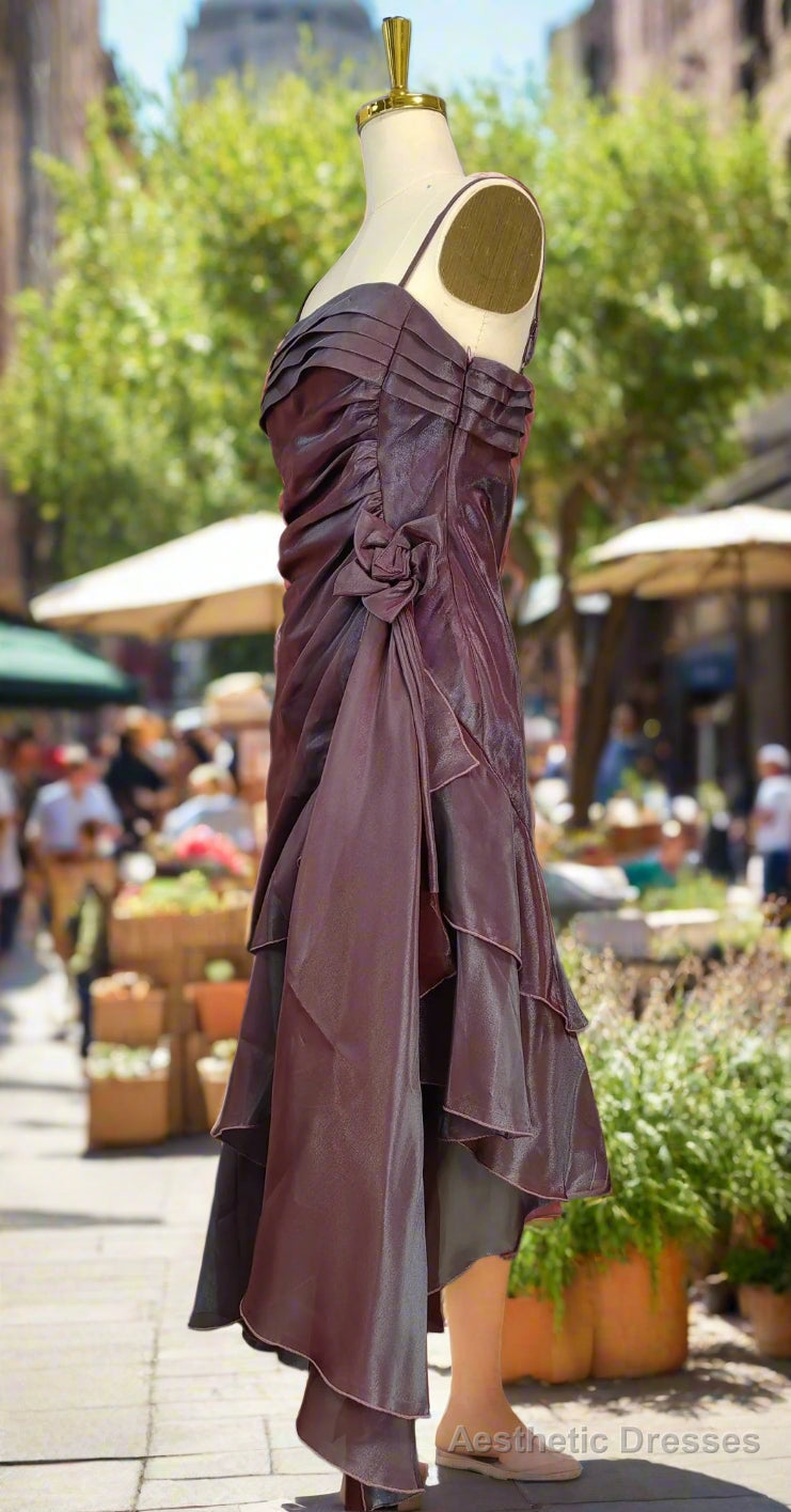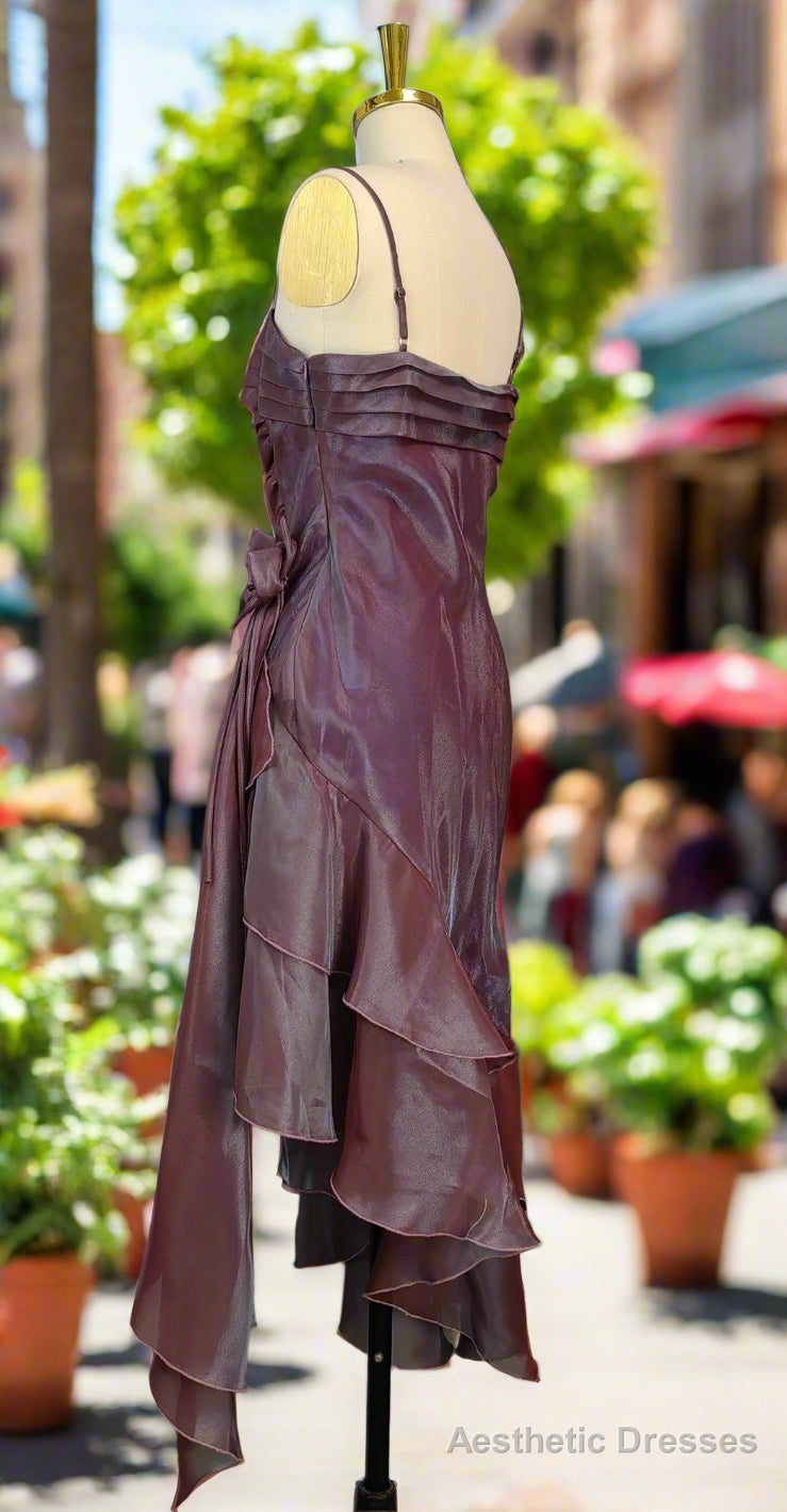 Sparkly Vintage Spaghetti Straps Purple Prom Dresses Ruffle Sleeveless Mermaid Ruffled Fromal Dresses
