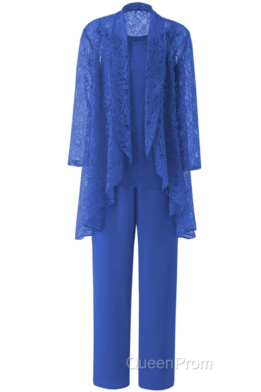 Three-Piece Grey Lace Mother of the Bride Pant Suits