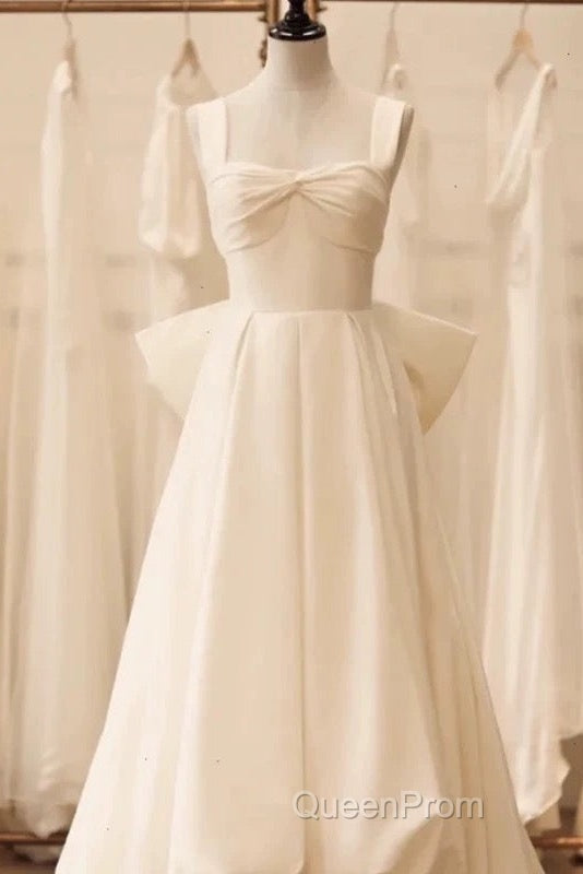 Timeless High Low Square Neckline Long White Satin Wedding Dresses