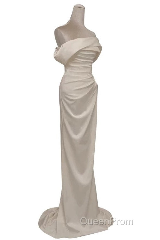Timeless Mermaid Off The Shoulder Short Sleeves White Satin Wedding Dresses