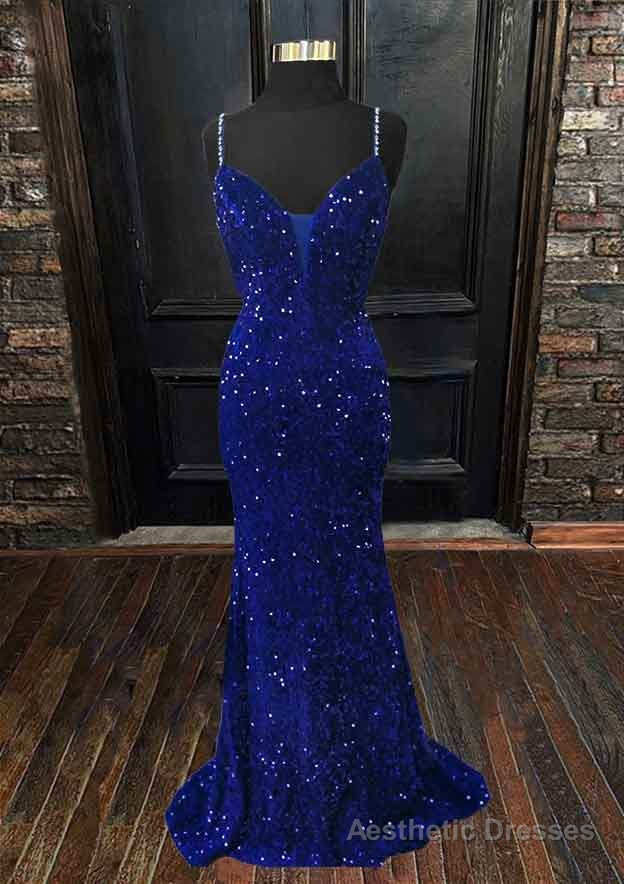 Trumpet/Mermaid V Neck Sleeveless Sweep Train Velvet Sequins Prom Dress
