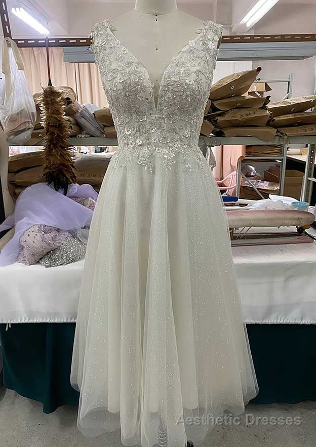 Tulle Prom Dress A-line Tea-Length With Appliqued Glitter