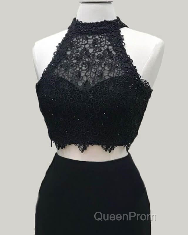 Two Piece Black Homecoming Dresses Lace Crop Top