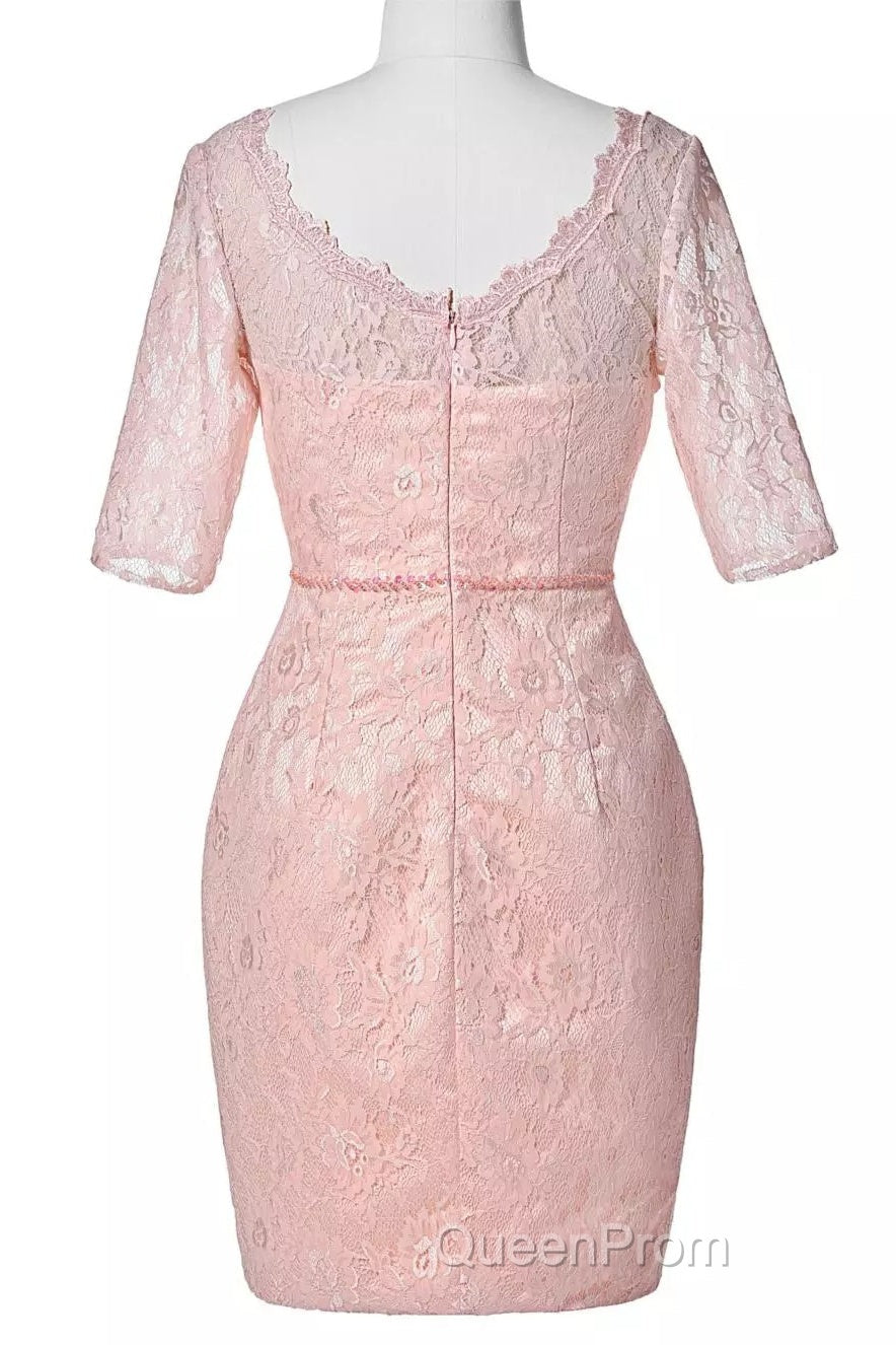 Two-Piece Blush Pink Lace Bodycon Short Mother of the Bride Dresses