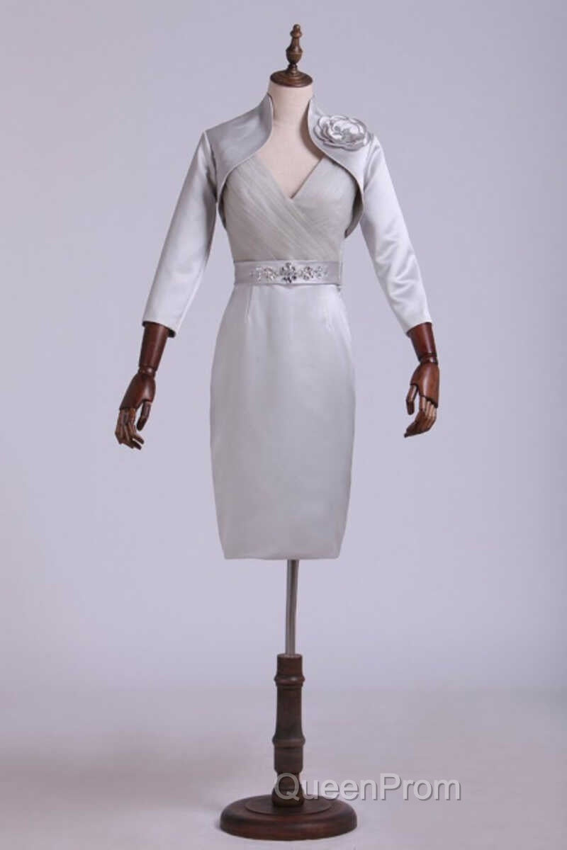 Two Piece Grey High Collar Short Mother of the Bride Dresses