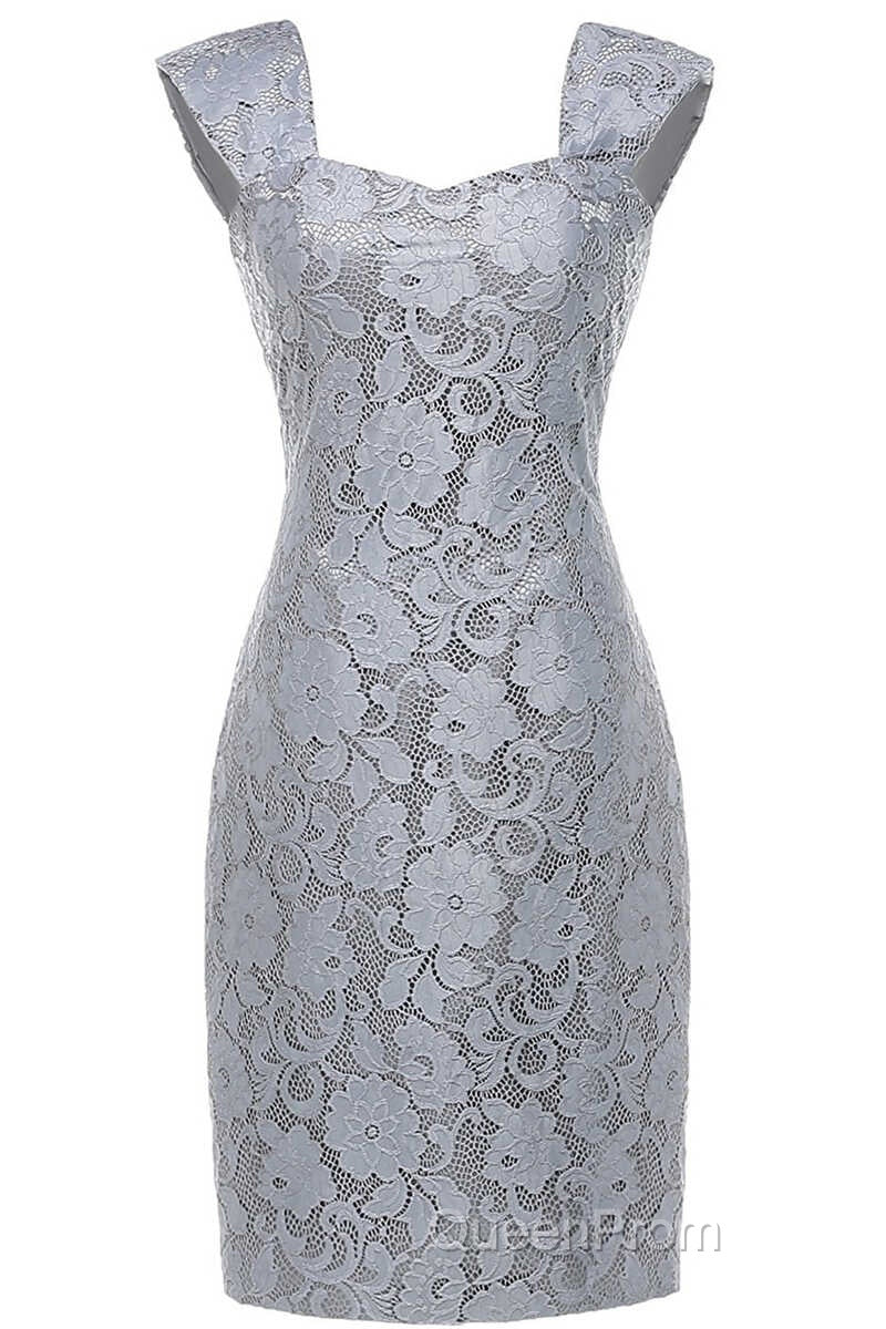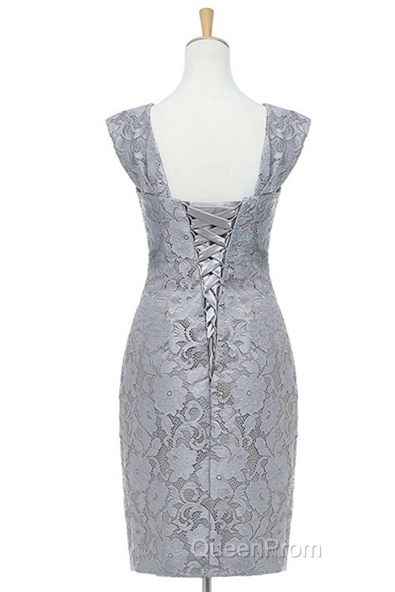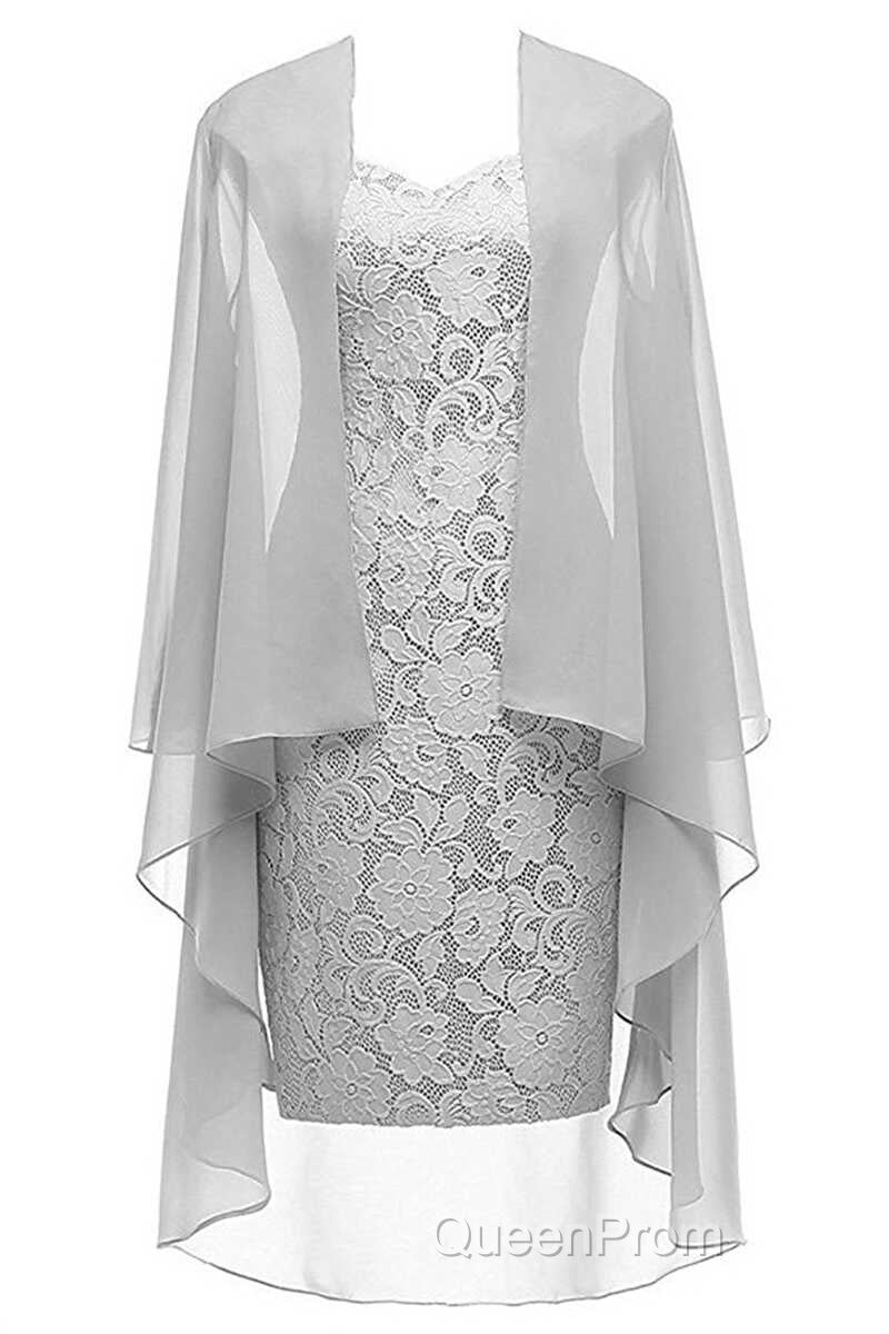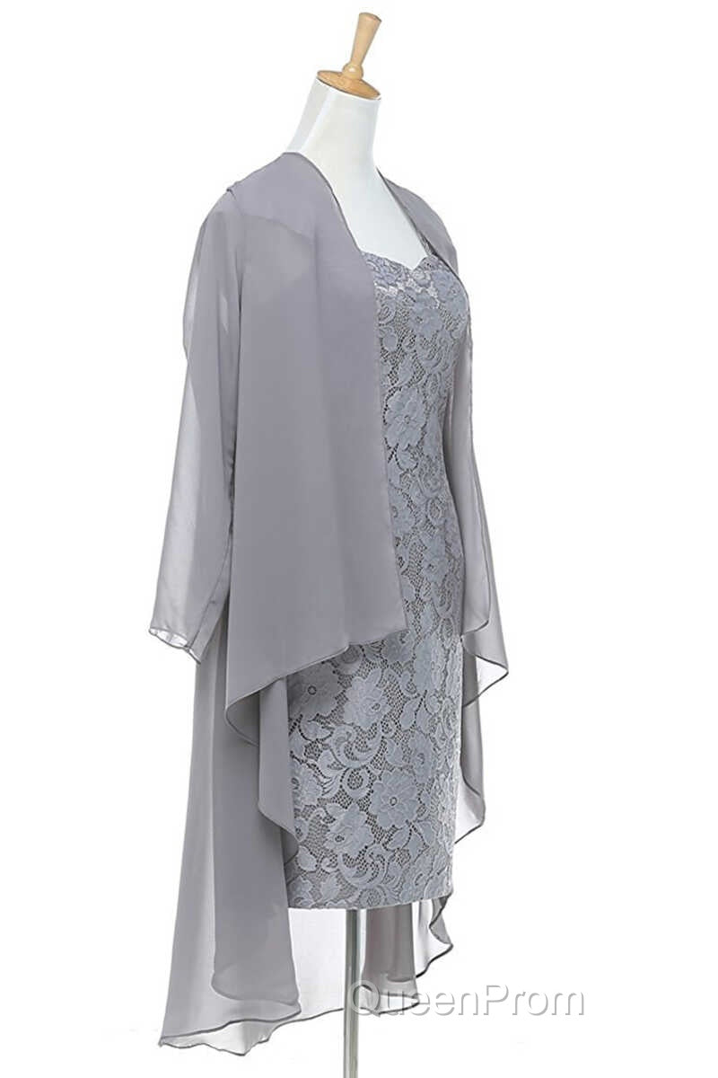 Two-Piece Grey Lace Short Mother of the Bride Dresses
