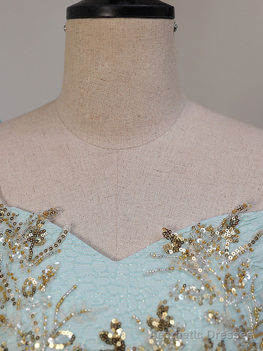 Unique A-LIne Satin Lace Long Prom Dresses, Blue Satin Sweet 16 Dresses