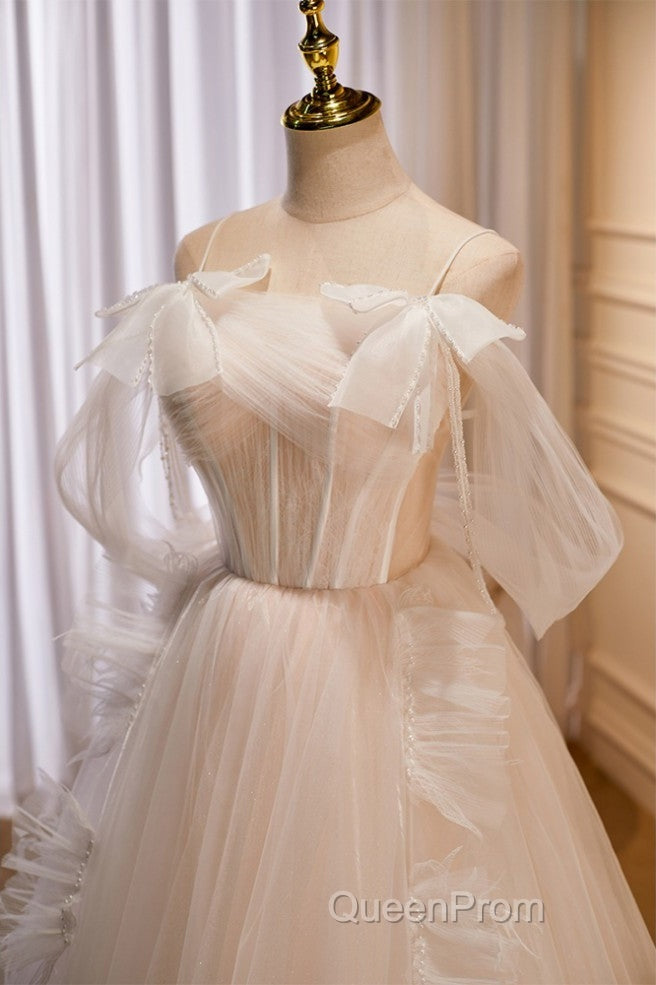 Unique And Noble Ivory Sleeveless Off Shoulder Ball Dresses Ivory Sheer Thin Shoulder Strap With Backless Strap Evening Prom Dresses
