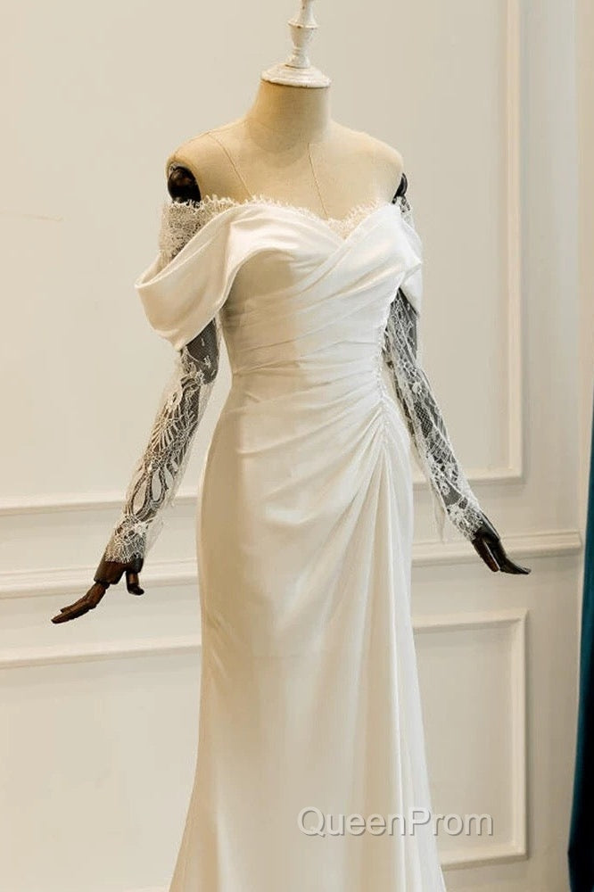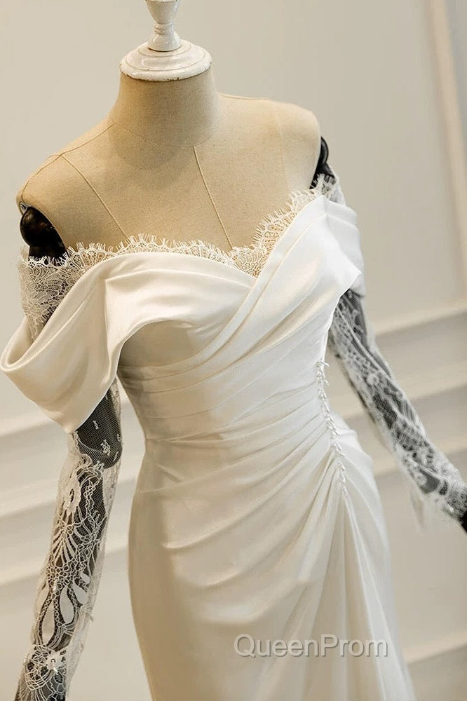 Unique Mermaid Off The Shoulder Pleats Satin Long Sleeves Wedding Dresses Brides Dresses