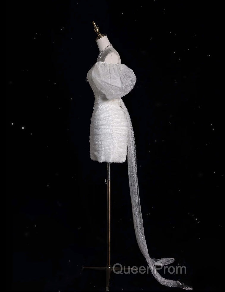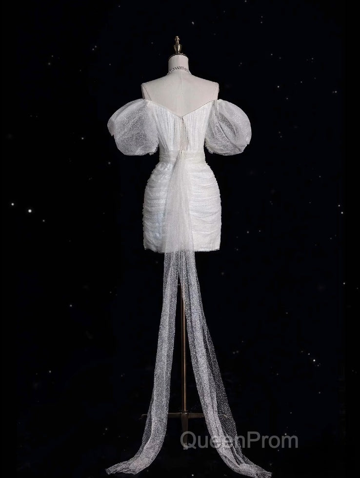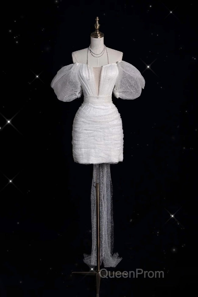Unique Sheath Off The Shoulder Sequin Short Sleeves White Wedding Dresses Brides Dresses