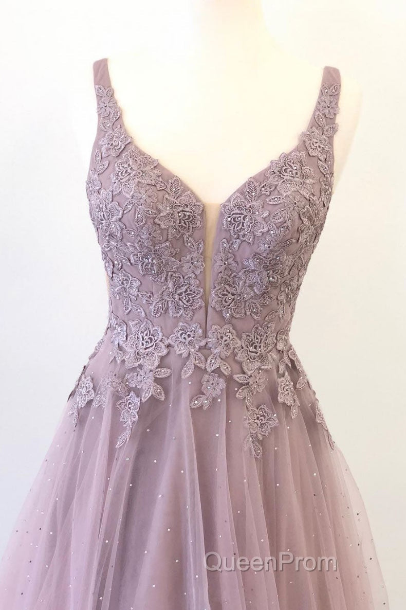 Unique v neck tulle lace long Evening Prom Dresses, tulle evening Dresses