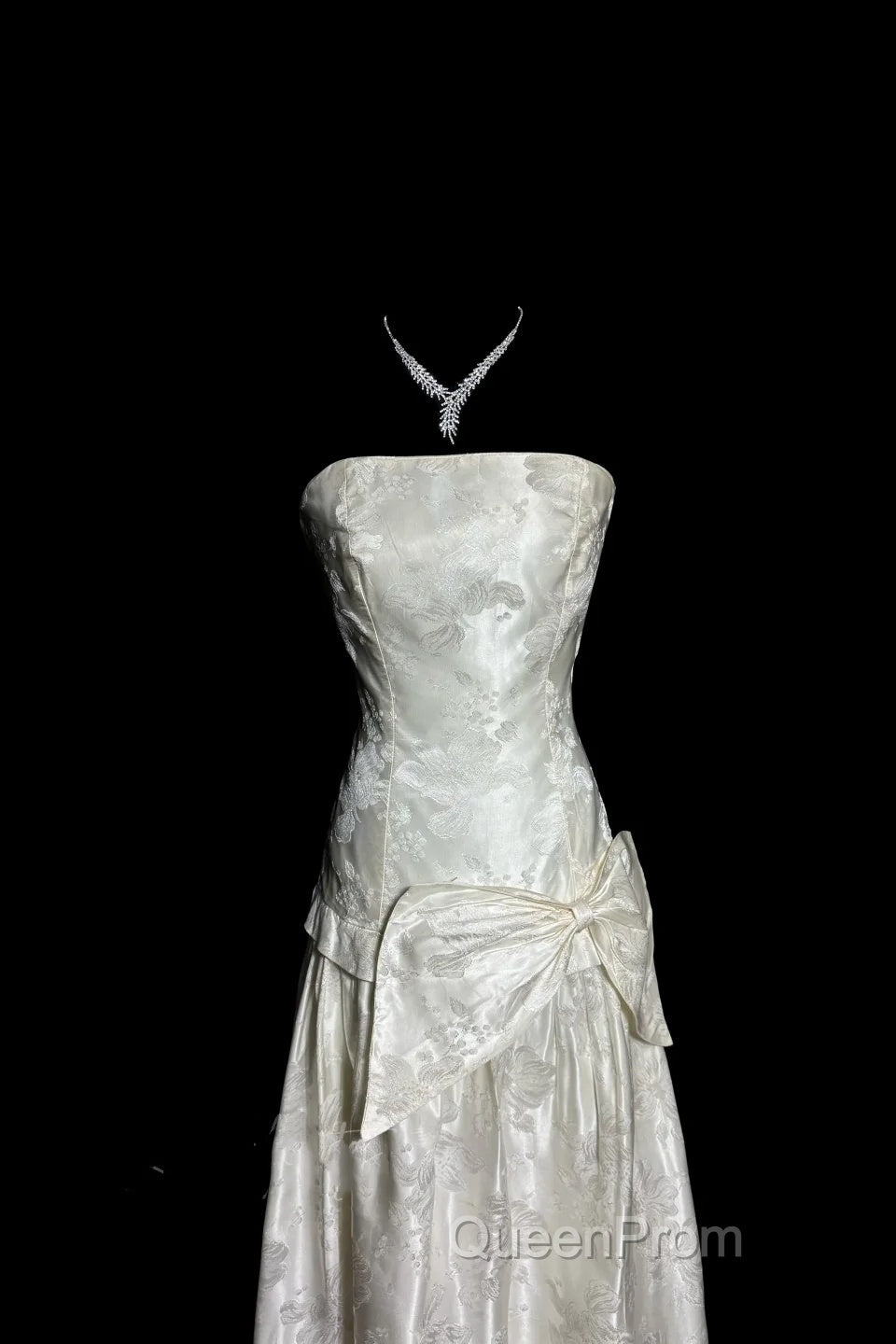 Vintage A Line Strapless White Lace Evening Prom Gown Fairy Evening Prom Dresses