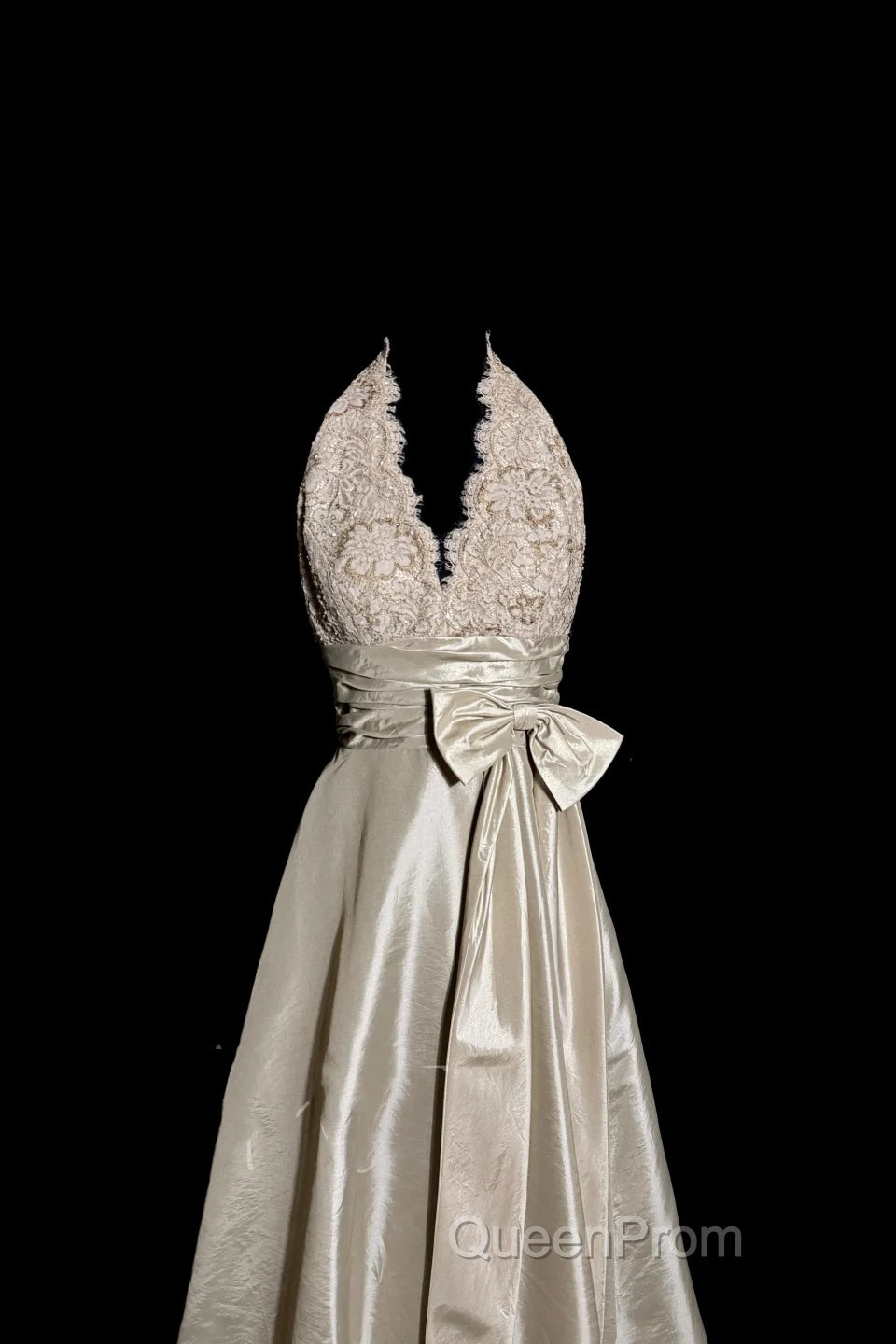 Vintage A Line V Neckline Champagne Lace Evening Prom Gown Fairy Evening Prom Dresses