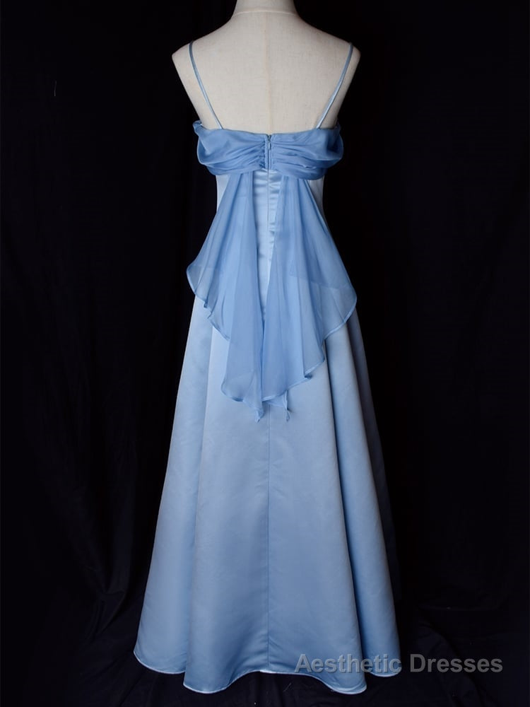 Vintage Blue Satin Spaghetti Straps Gown Elegant Dress
