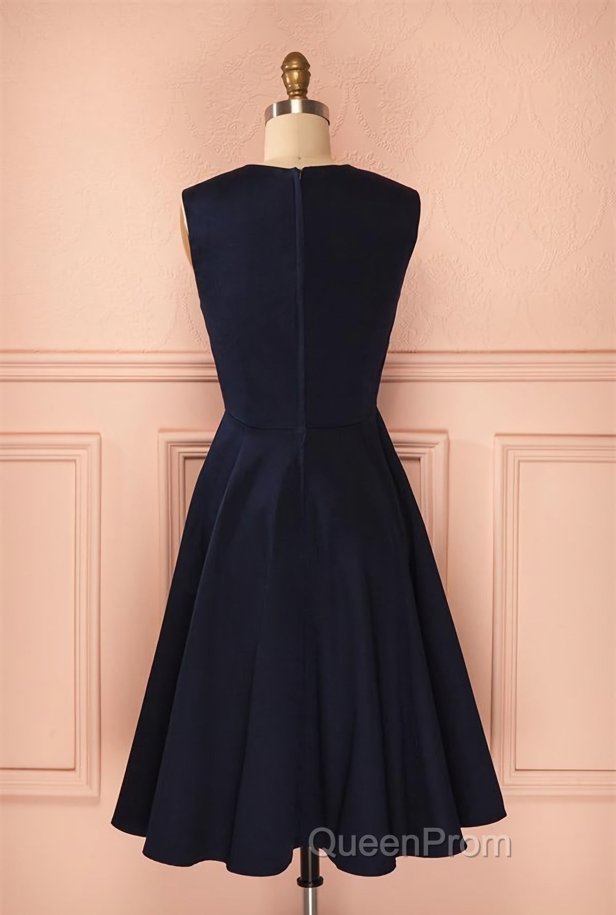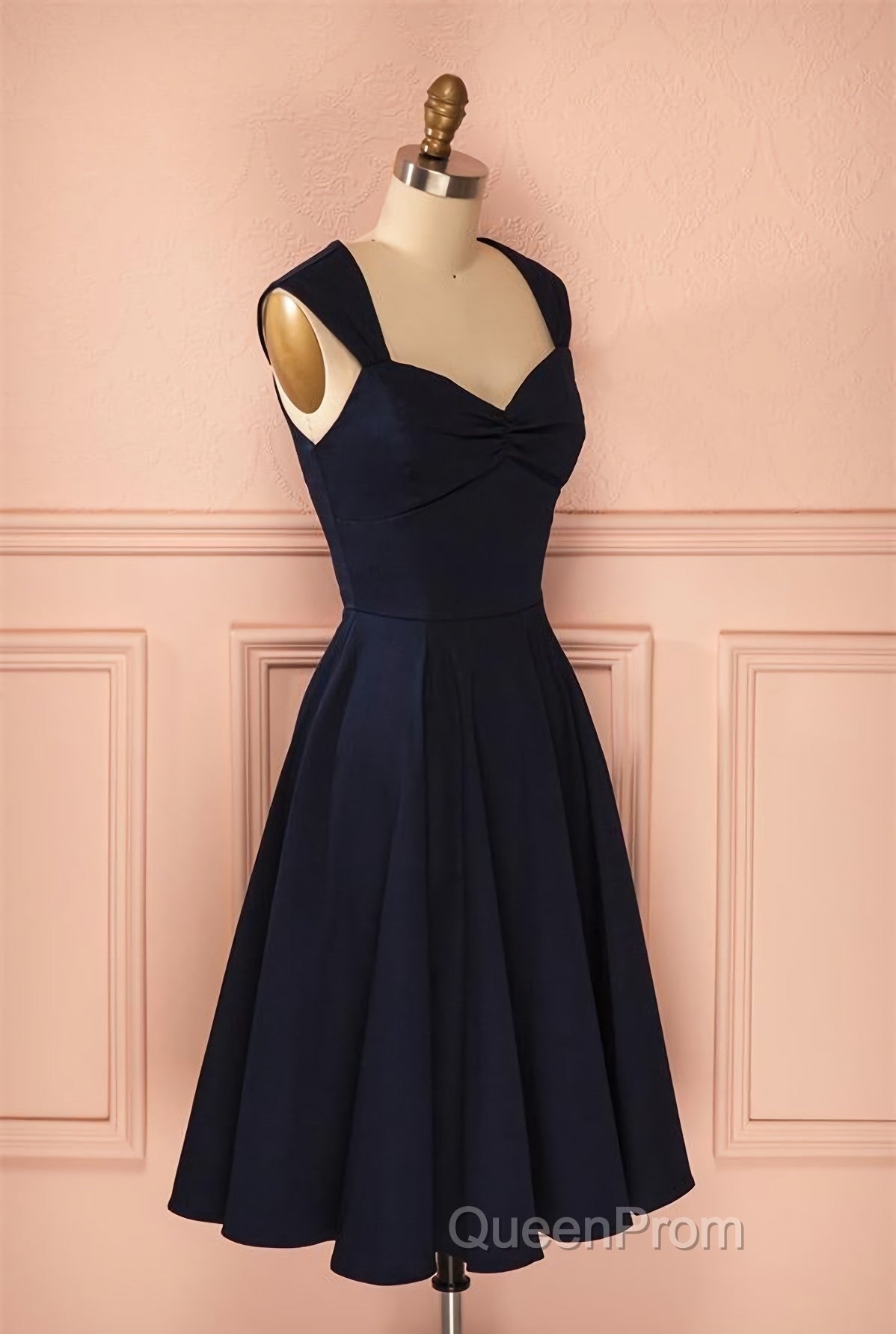 Vintage Simple Short Navy Blue Elegant Handmade Homecoing Homecoming Dresses