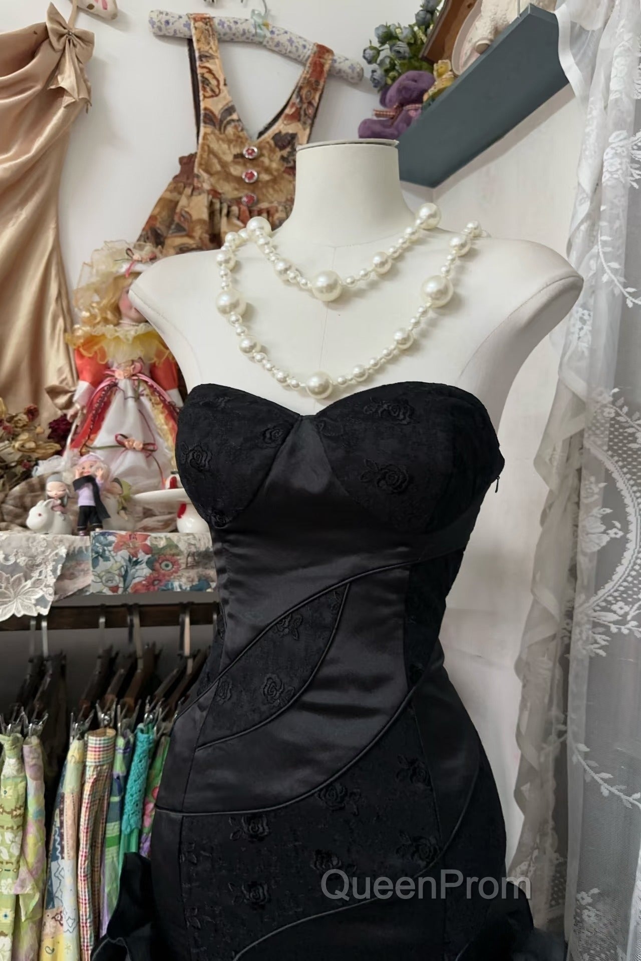 Vintage Fashion Mermaid Sweetheart Black Floor Length Evening Dresses Evening Prom Dresses
